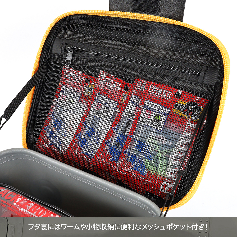 ●フタ裏にはワームや小物収納に便利なメッシュポケット付き!