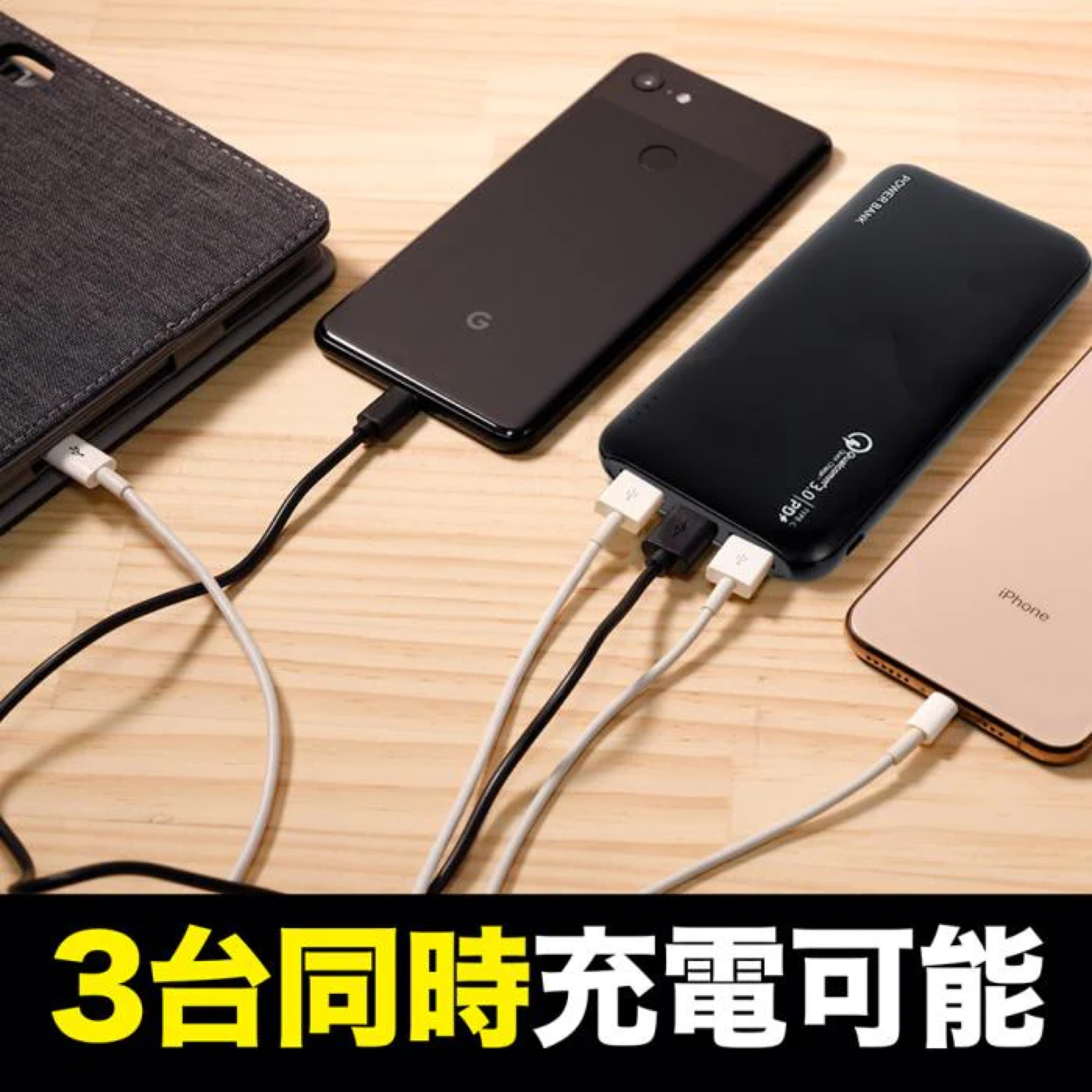 USB-CおよびUSB-A×2の合計3ポートから同時充電可能です。