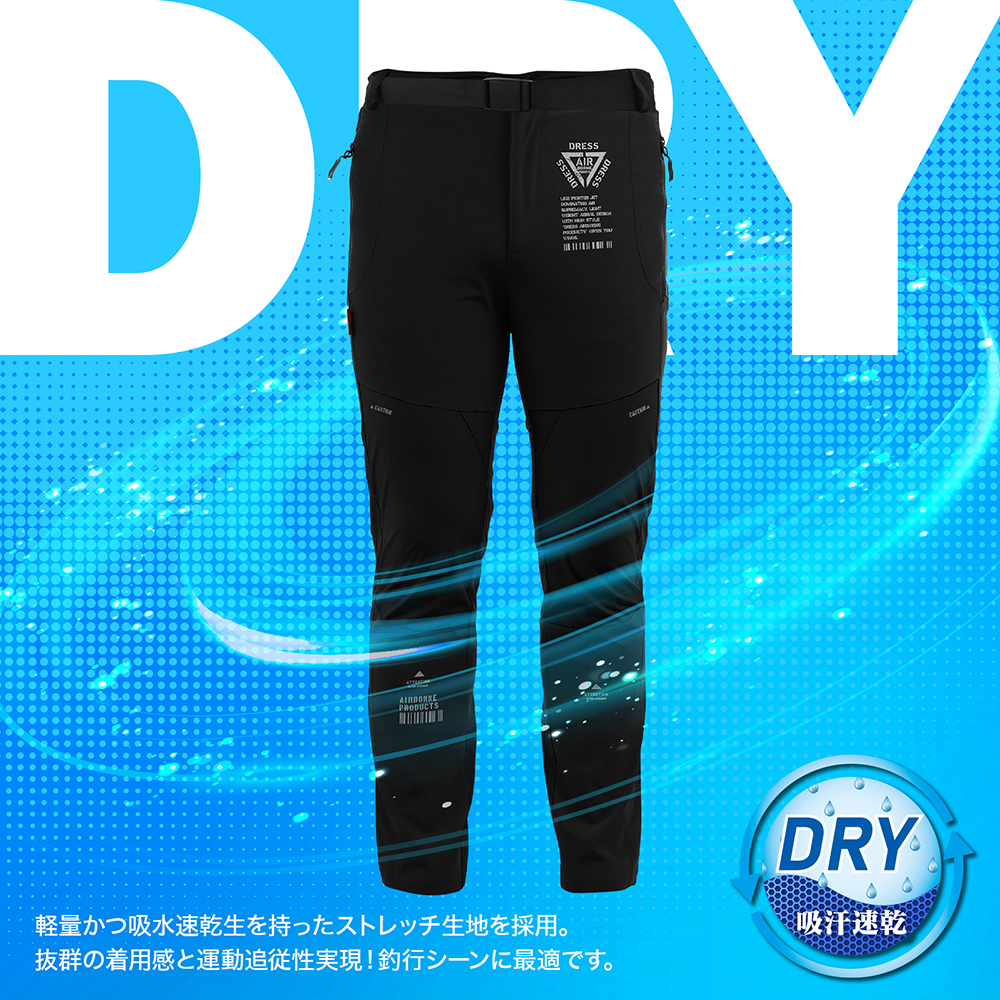 快適な着用感と運動追従性実現した、釣り用ドライストレッチパンツ