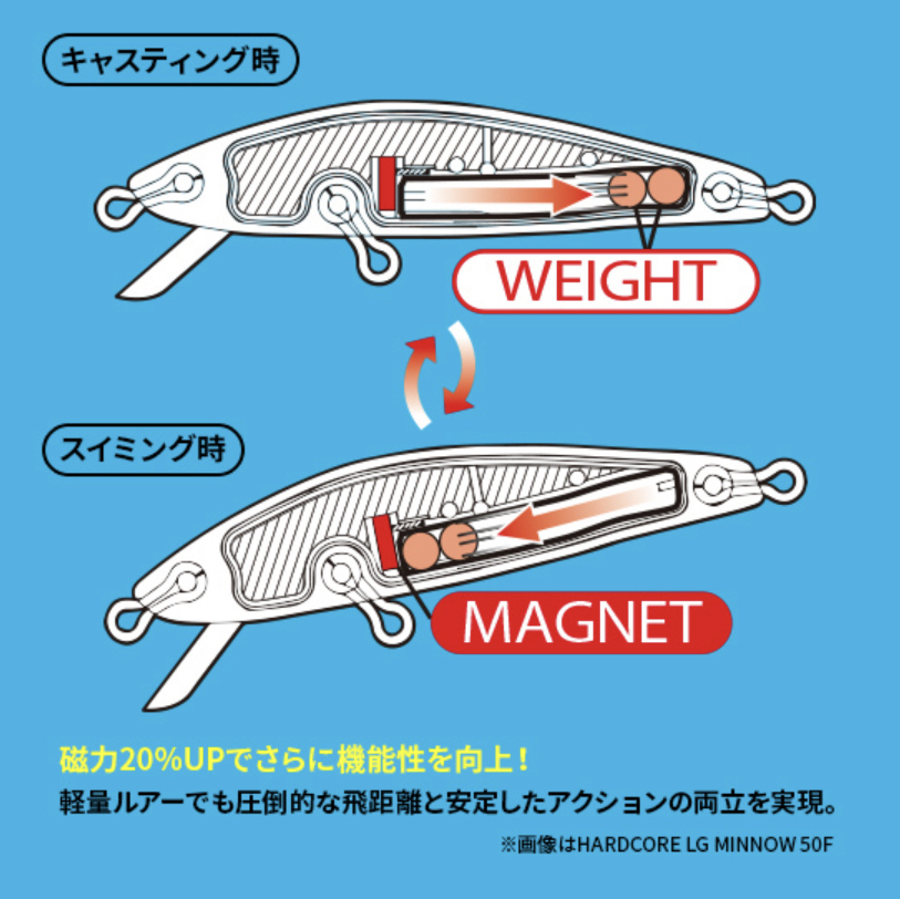 圧倒的な飛距離とキャストの正確性を約束する重心移動に、高いレスポンスで素早く立ち上がる固定重心の長所を融合。