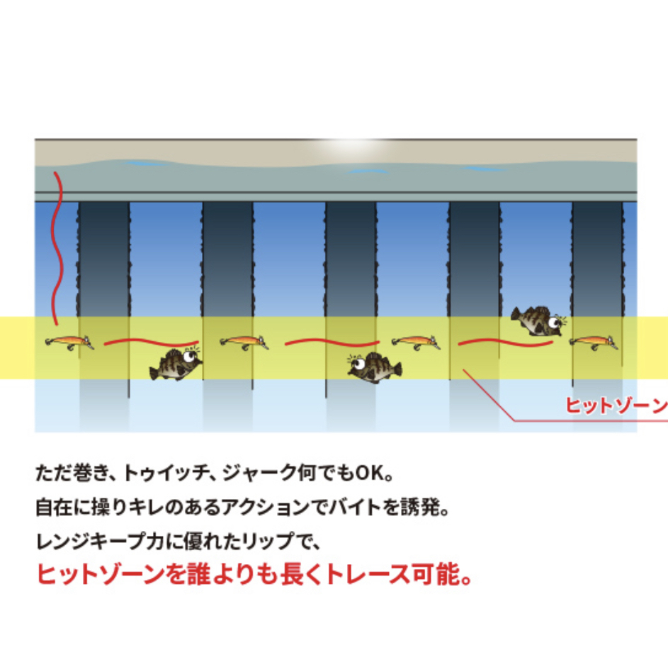 ただ巻き、トゥイッチ、ジャーク何でもOK。自在に操りキレのあるアクションでバイトを誘発。
