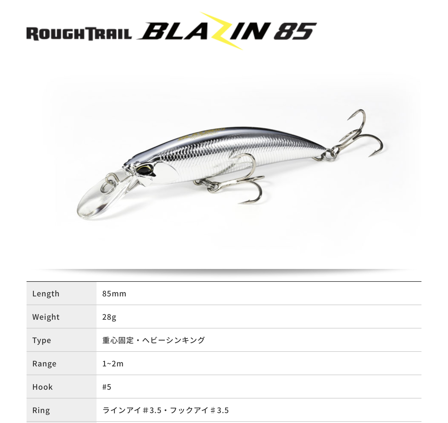 食べごろサイズなのに抜群の飛距離を実現したブレイジン70/85!!全国のメインベイトとなっているイワシをイミテートし、様々なフィッシュイーターを虜にします。より多くのアングラーが扱いやすいサイズで、今までこのサイズのプラグが届かなかったあのポイントへアプローチでき、ショアからのサゴシ、青物ゲームの可能性をより一層広げるでしょう。