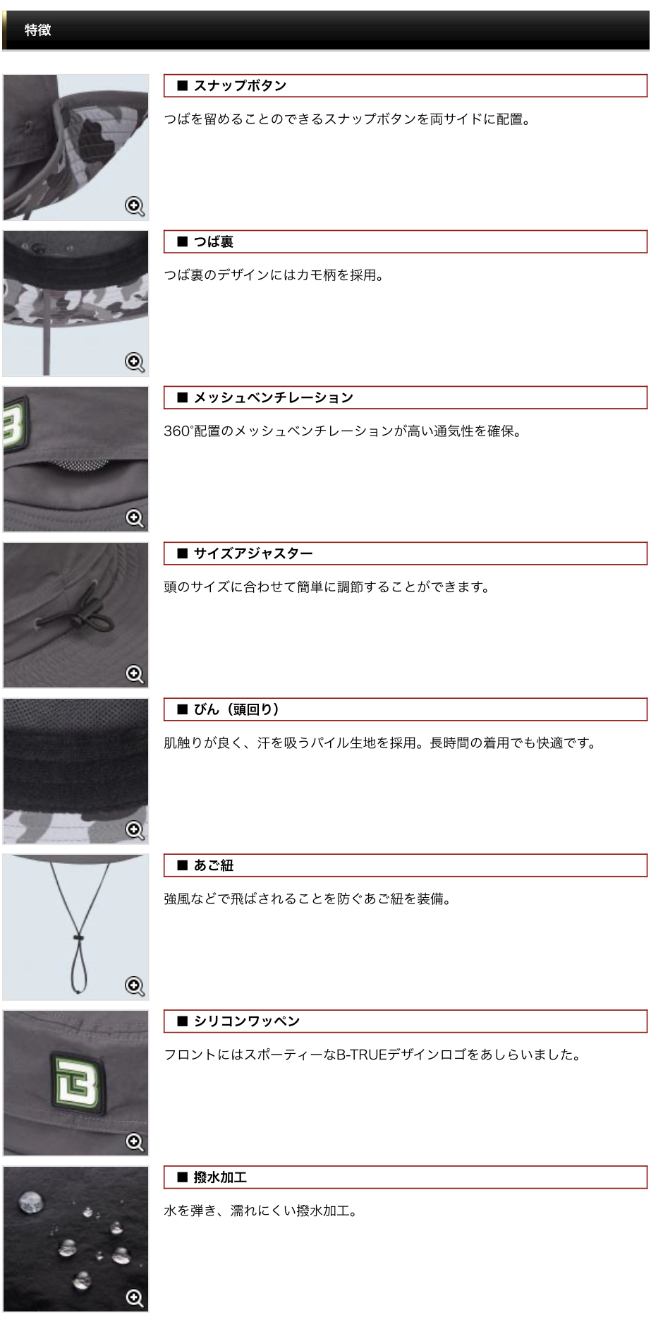 通気性・撥水性にも優れたB-TRUEジャングルハット。
