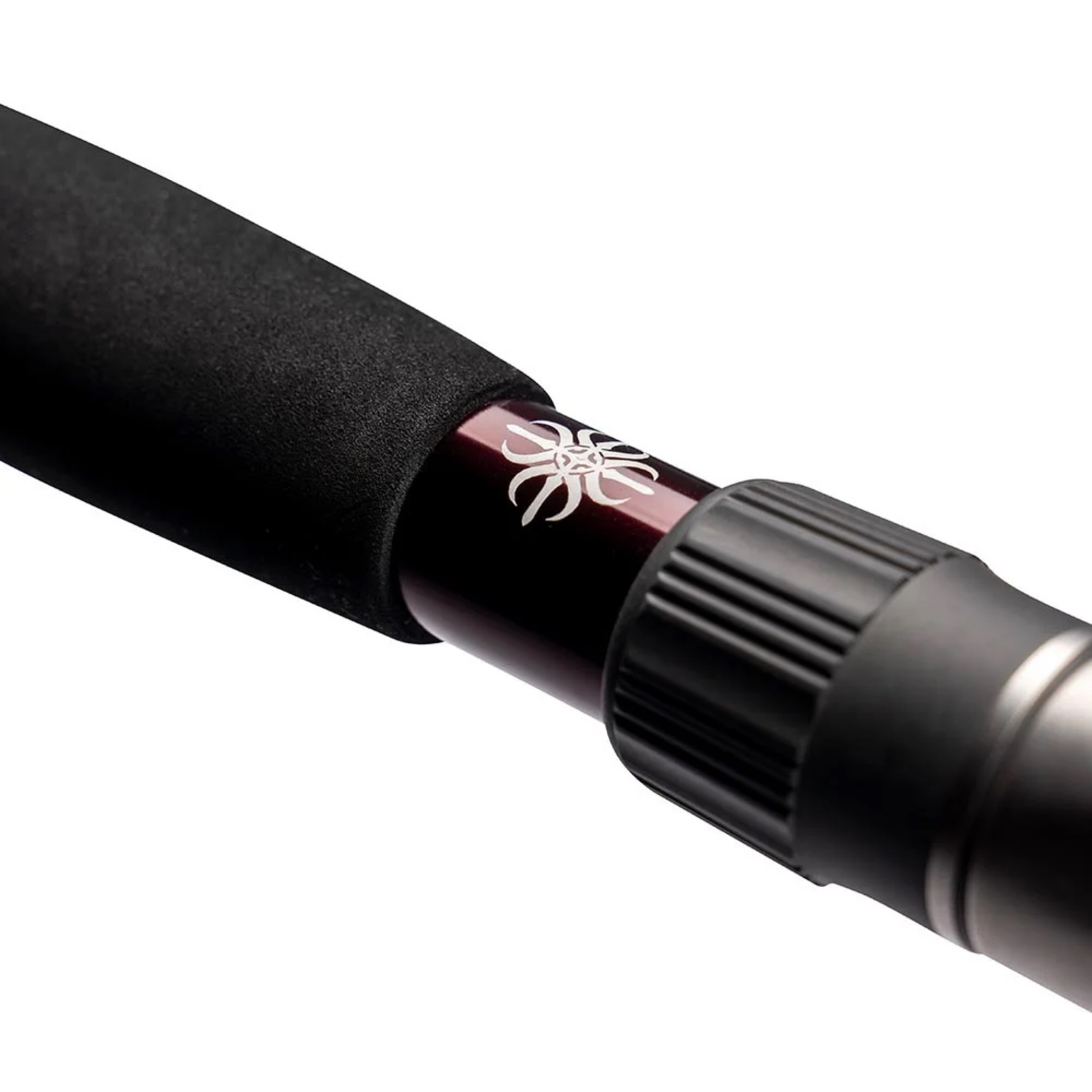 ブランクスは大型青物をいなすパワーを備えながら不安定な足場でのファイト、安定したキャストの持続性をを得るべく“柔軟さ”も兼ね備えたテーパーデザインとなっている。
