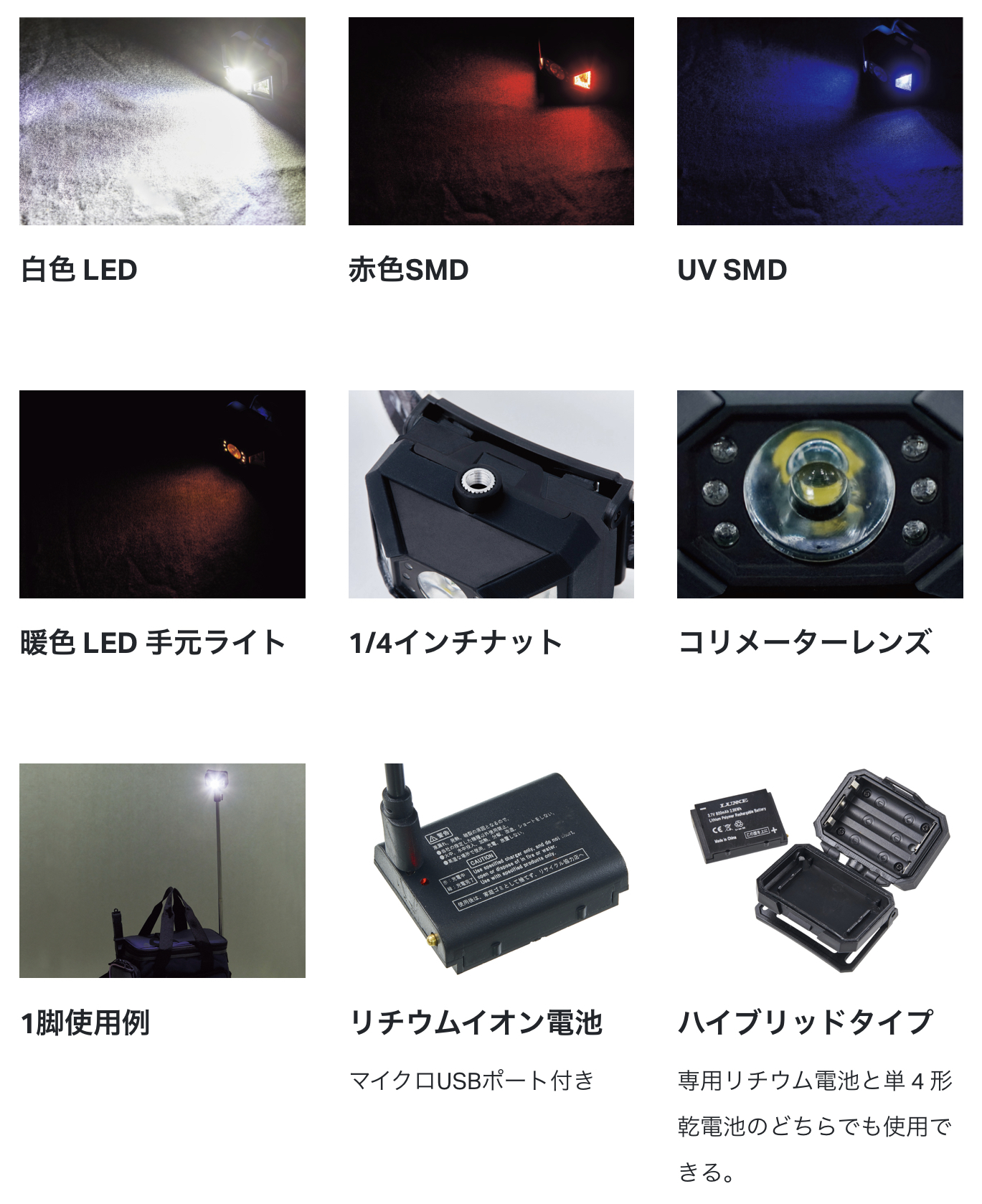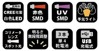 ●白色LEDは、ボタン長押しで明るさを無段階調整可能。