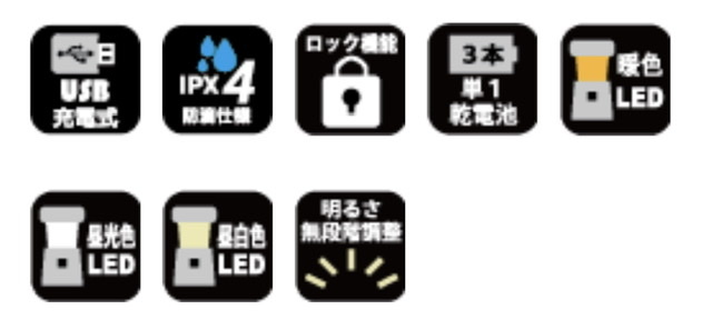 ●バッグ内での誤点灯を防ぐロック機能付き (1 秒間に 2 度押しで点灯)。