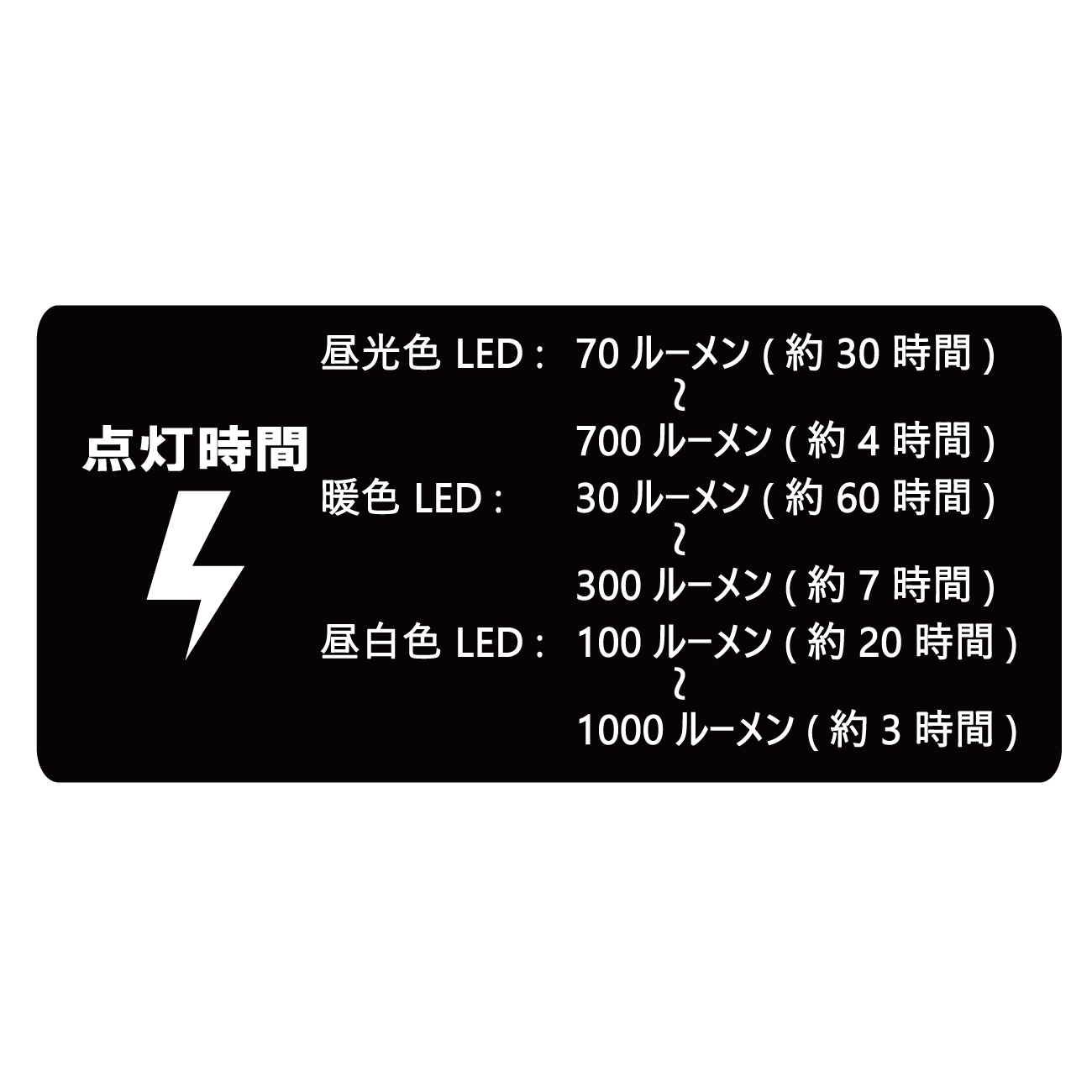 ●昼光色、暖色、昼白色ともボタン長押しで明るさを無段階調整可能。
