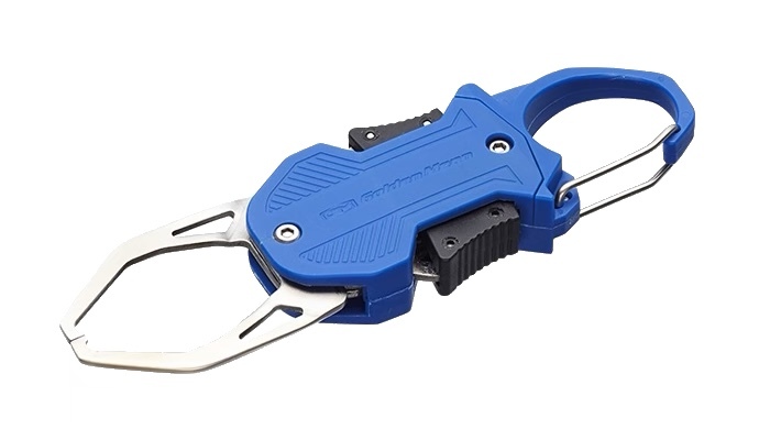 小型回遊魚やロックフィッシュなどのライトゲームフィッシュ専用コンパクトフィッシュグリップ「GMグリップミニ LT」は、簡単操作で魚の口をしっかりホールドします。