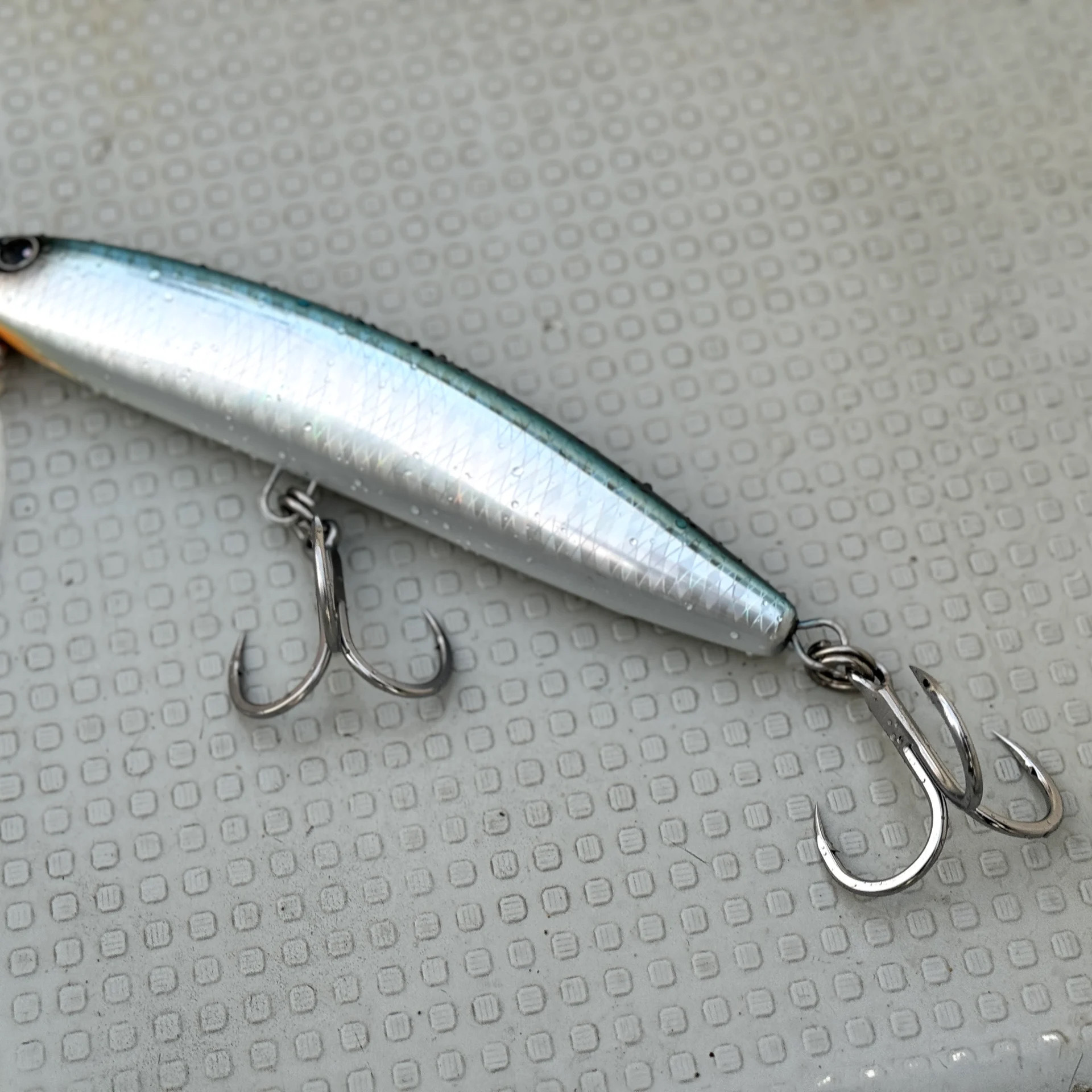 トリプルフックはモンスター狙いで使用レポートの多いBKK社GT-REX #5/0(13.9g)までの使用を想定して設計しています。ただ、海水使用で浮力がギリギリの設定となりますため、海峡や接続金具の重量によってルアーが浮ききらなくなる可能性がございます。その場合は各金具やフックウエイトを調整してご使用ください。