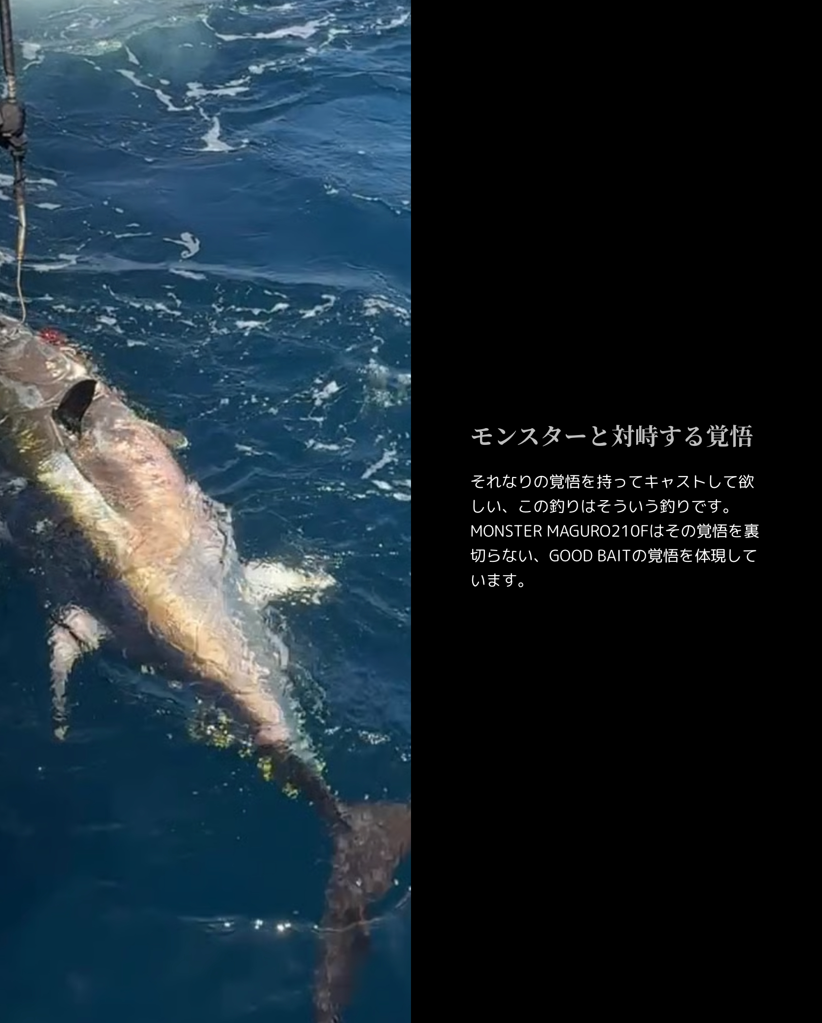 それなりの覚悟を持ってキャストして欲しい、この釣りはそういう釣りです。MONSTER MAGURO210Fはその覚悟を裏切らない、GOOD BAITの覚悟を体現しています。