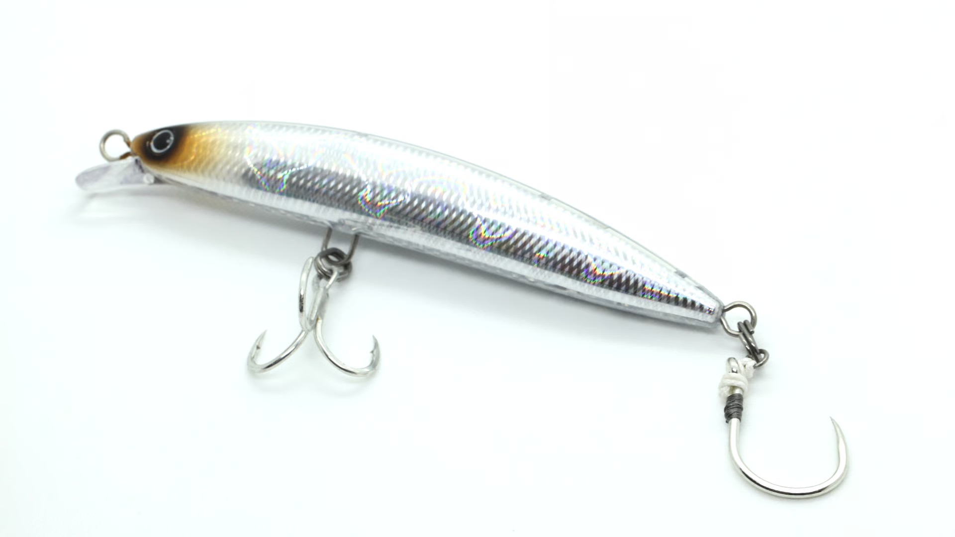 シーバスやアカメ狙いで使用する上ではもう少し小さなフックの搭載も可能です。私はOWNER社 STX-58 #1/0や#2/0でスローリトリーブ仕様にカスタムしています。