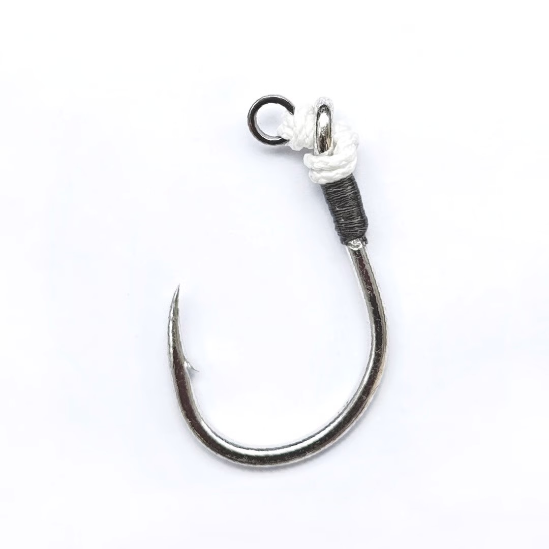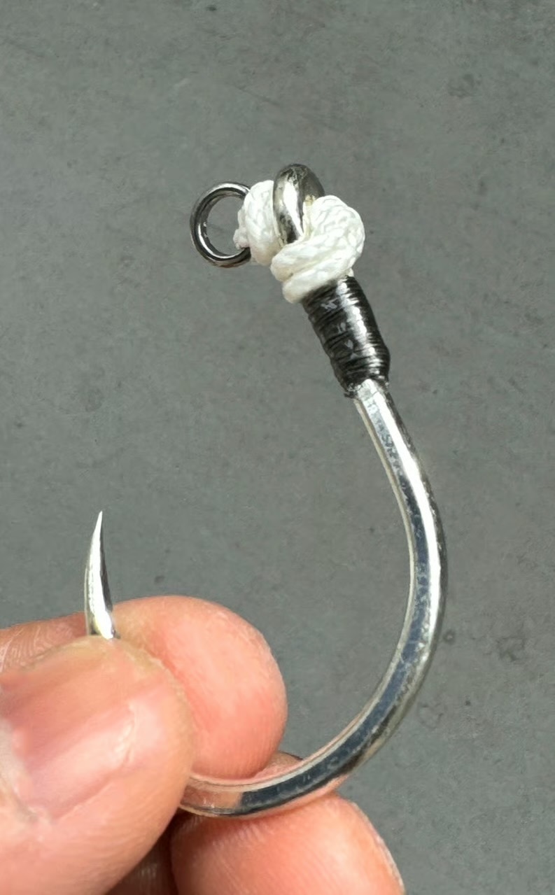 フックを自作した切っ掛けは市販品のメーカー製フックを使用してマグロをリリースした際、リリーサーでフックを力一杯掴んだらスレッドを保護する収縮チューブが千切れてしまい、更にその中のスレッドが解けた経験をした時からです。
