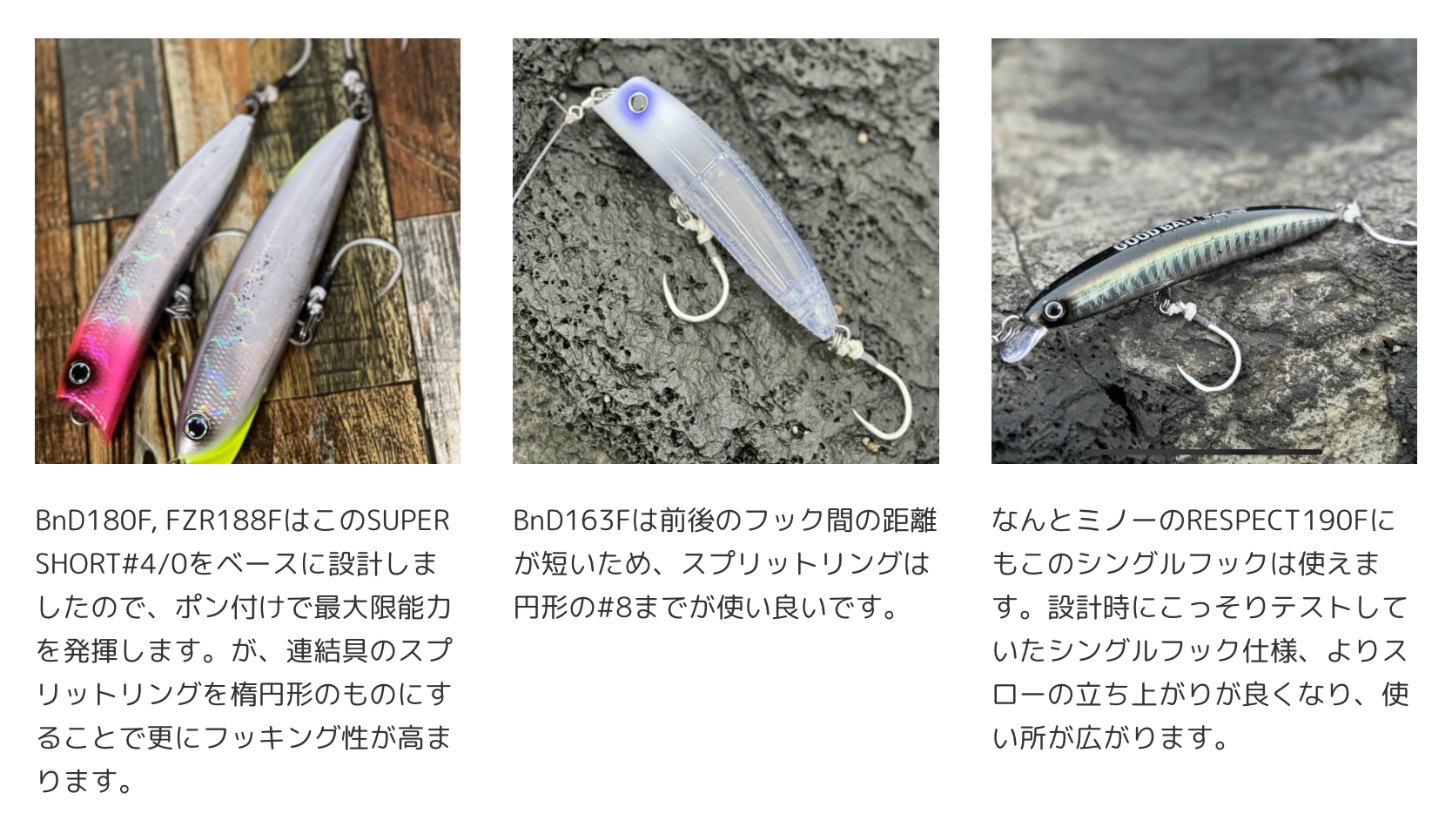 BnD180F, BnD163F, FZR188F, さらになんとRESPECT190Fにまで搭載可能な#4/0サイズ