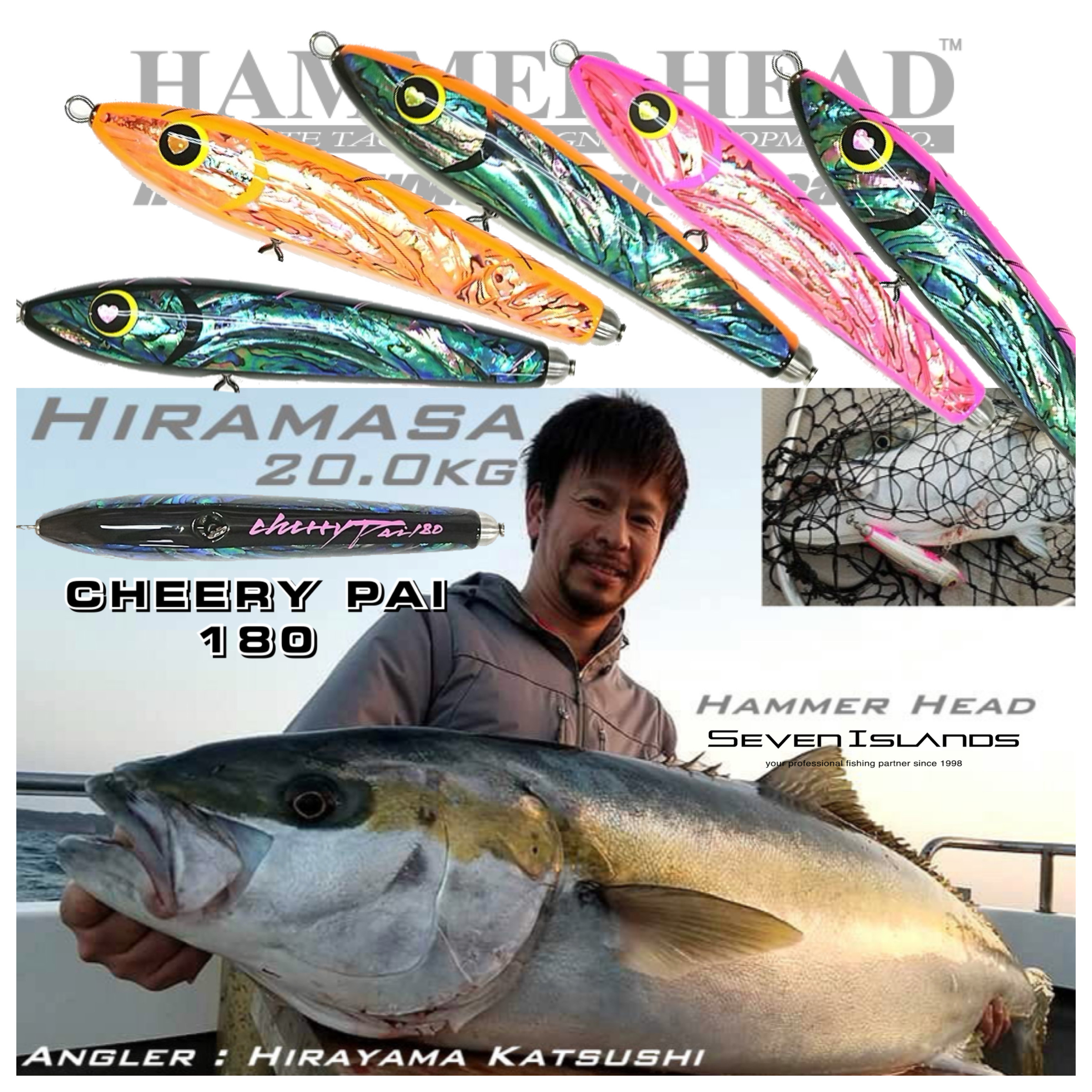 ”チェリーパイ”は、ヒラマサ、ブリなど青物用に開発したウッド製ルアーです。”チェリーパイ”特徴は、浮力が強く、通常のジャークベイト系のルアーと異なり強くダイブさせたときのダイブ音と泡、泡をまといながら直後のZ(ゼット)字軌道Z字 軌道時の左右のサイド面による水押しによる波動とスプラッシュでターゲットを誘惑します。上記のアクションは、ポッピングとほぼ同じぐらいの力でダイブさせますので、(ポッピング後そのままジャークするイメージです)柔らかめのロッドでは、力が伝わりづらく若干動かしづらいかも知れません。Z 軌道時の左右のサイド面による水押しが、ドン、ドン、とロッドに伝わります。ロッドティップの角度は、水平~下向きに、船や釣り座席によっても変わりますがルアーとの距離によって(ルアーが遠いときは水平、近づくほど下向きに)調整してください。スプラッシュが少ない場合は、水平気味に調整してください。上記のアクションは、海面が穏やかな時に(波2m以下)有効です。その他も、もちろん通常のジャークベイト系のようなS字軌道やトゥイッチ、水中ダート、平打ちアクションも可能です。”チェリーの防水加工”は、加圧式を採用しておりますので従来よりも耐水性に優れておりますがフックや魚の歯傷から吸水して、バランスが変わることがあります。天然ウッドルアーですので、若干の成型誤差やウエイト差がある場合があります。ご了承お願いします。