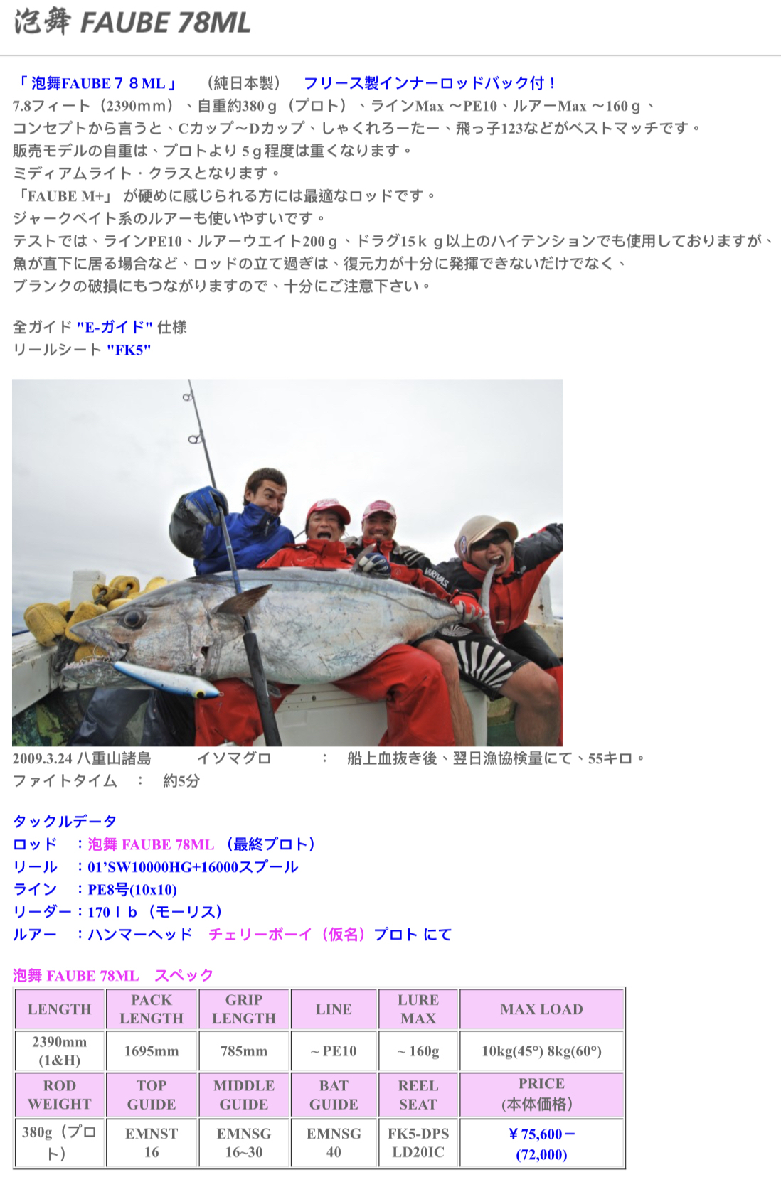 HAMMER-HEAD FAUBE BOAT CASTING ROD SERIES 77H/77M/78ML
