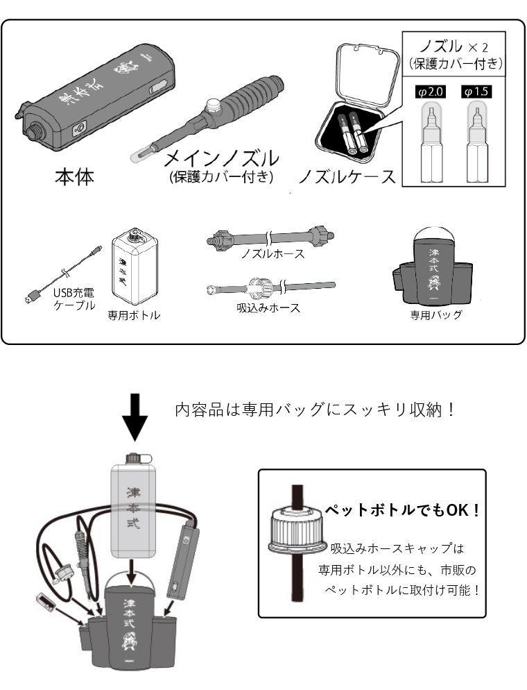 リムーバー+2種類の口径ノズルで様々なサイズの魚に対応。