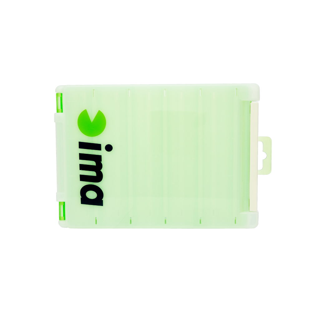 "両面収納タイプのルアーケース「ima LURECASE REVERSIBLE140」。ルアーを1本ずつ分けて収納できるので、手持ちのルアーが一目瞭然!フック同士も絡まずルアーチェンジもスムーズに。水抜きダクト付きなので丸洗いも可能です。