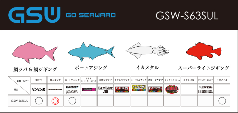 広大な大海原をフィールドにオフショアゲームを始めたいアングラーの為のロッド”GSW”はロッドの汎用性を高め、一つのタックルで四季を通じていろいろな対象魚と釣種を気軽に楽しむ事をコンセプトに設計されています