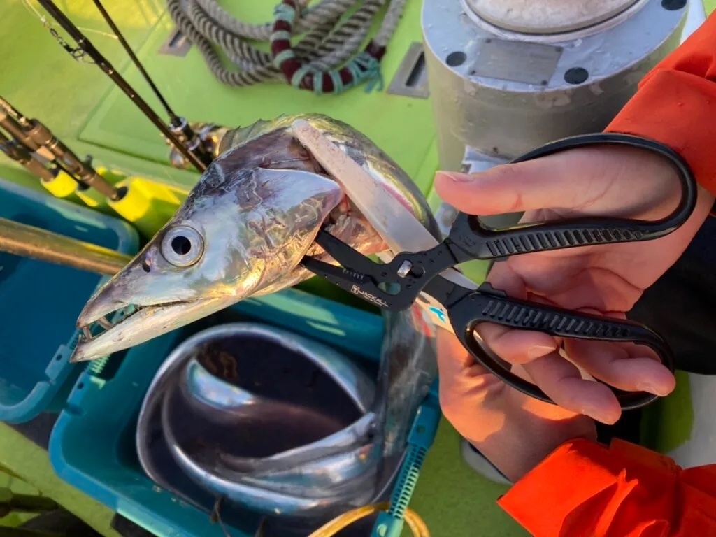 魚を絞めたり、捌いたりするばかりでなく、パッケージを開けたり、実釣ではテンヤの餌を素早く用意すること等にも役立つ多機能ハサミです。