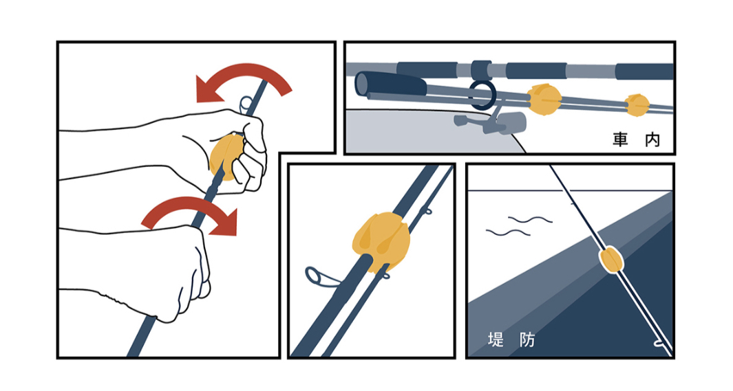 ロッドの継ぎ目が固着してしまい抜けなくなった時のお助けアイテム。エラストマー素材でロッドとの接着性が高く力の伝達にロスがありません。また、柔らかい素材をいかしてロッドベルトとしても使え一般的なロッドベルトとは違いロッド同士が触れ合わないので傷が付く心配がありません。その他、堤防での竿置きや、車載時のノイズ軽減など、様々な用途で使うことができる便利アイテムです。