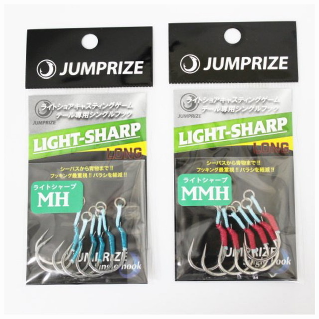 ・リング×管付きフックだと可動域が狭くねじれに弱いが、ジャンプライズシングルフックは叩き針×組糸のため、魚が暴れてもねじれに追随し針の伸びや折れを軽減します。