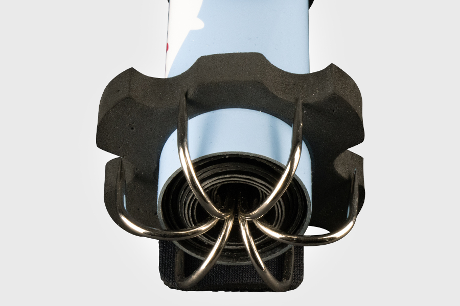 ウエストバッグに吊り下げることもできるコンパクト性・軽量化を実現しながらに、6本針の屈強なフックは健在で突然のモンスターアオリにも対応できる強度は健在。