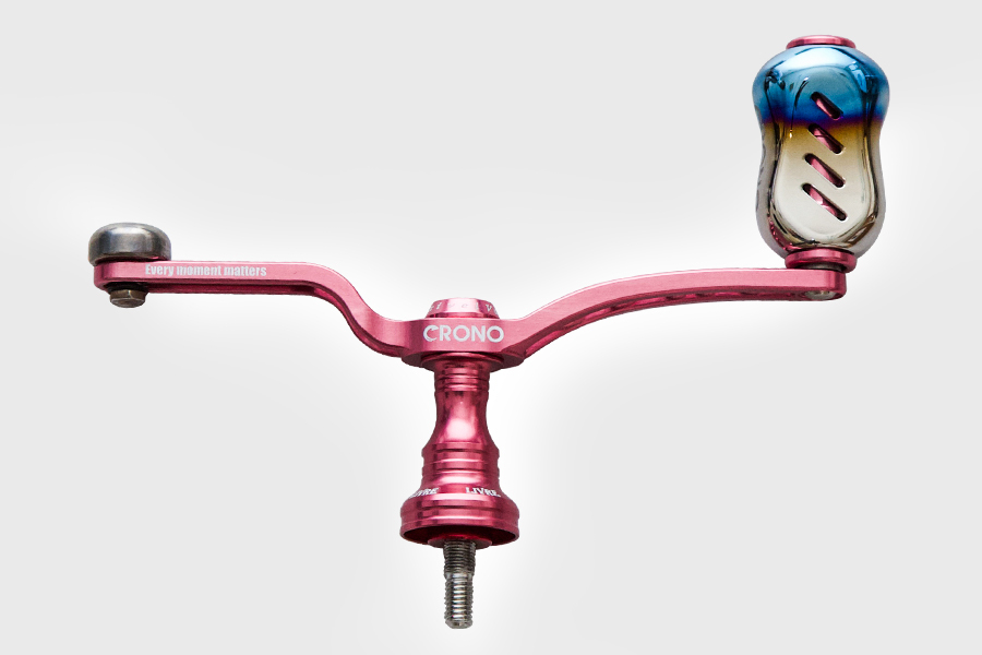 メインのハンドルステーはクロノ特注の「CRONOピンク」に仕上げCRONOロゴとEvery moment mattersを刻印。