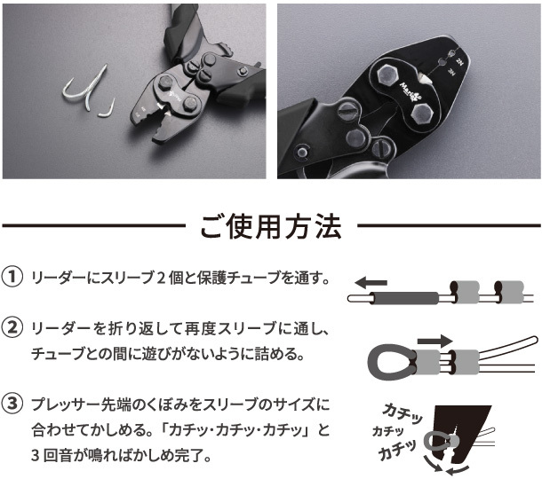 最適な力の伝導で、簡単&確実にスリーブ止めが可能。