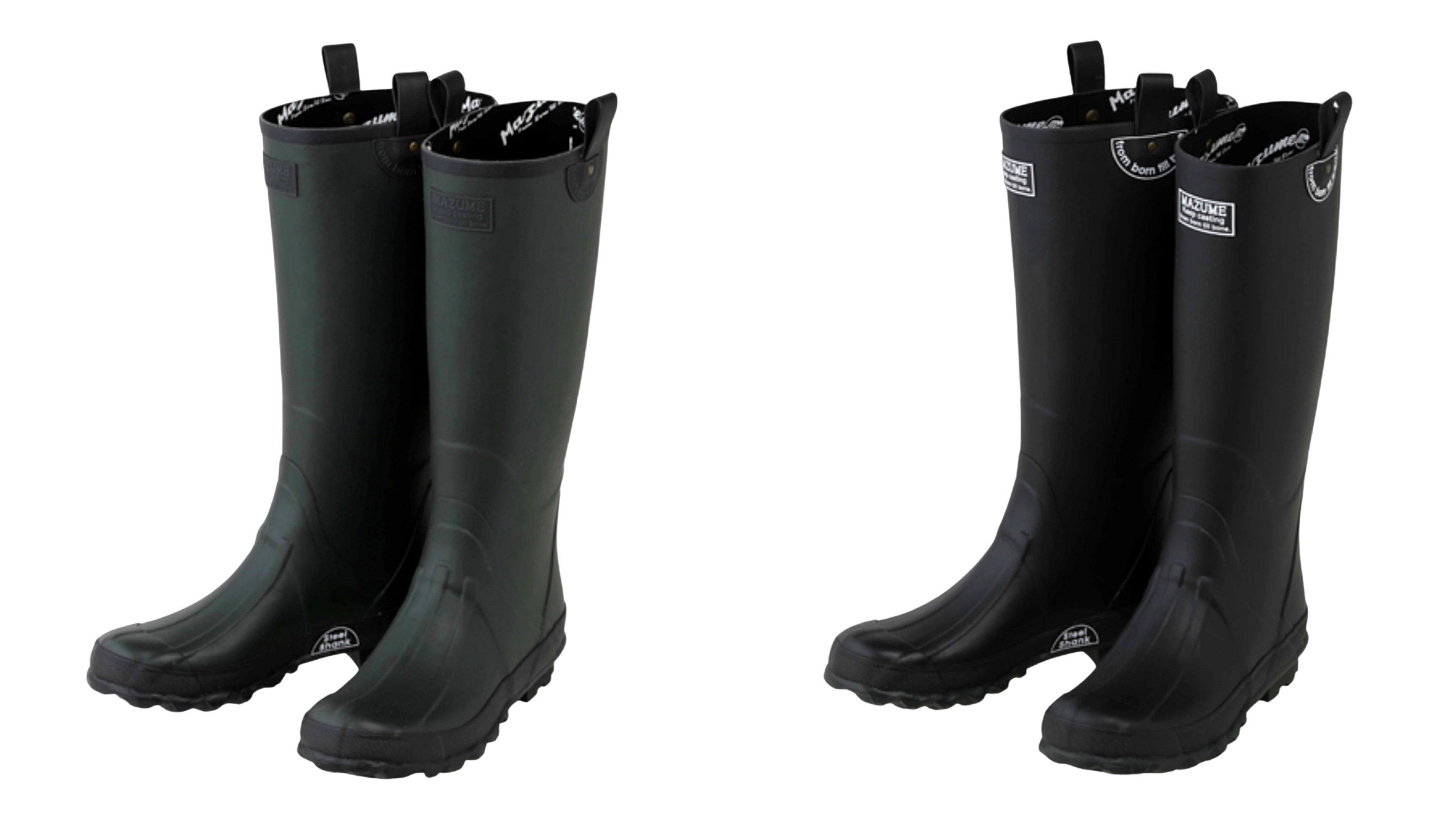 専用の金型と特殊な工法によって、履いたときのシルエットが美しく見えるように丈をヒザ下ぐらいの長さに設定したmazumeならではのラバーブーツです。