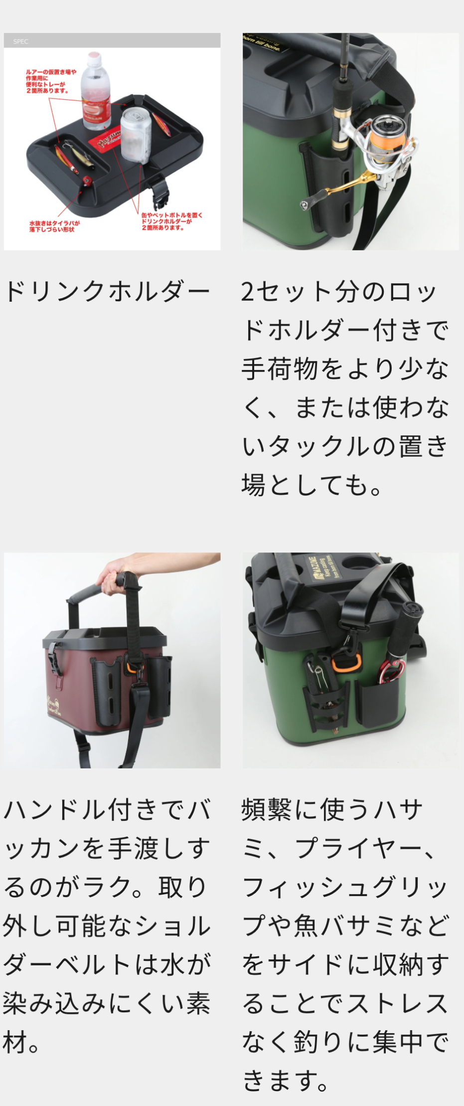 釣り人にとって便利な機能が詰め込まれた多機能バッカン。