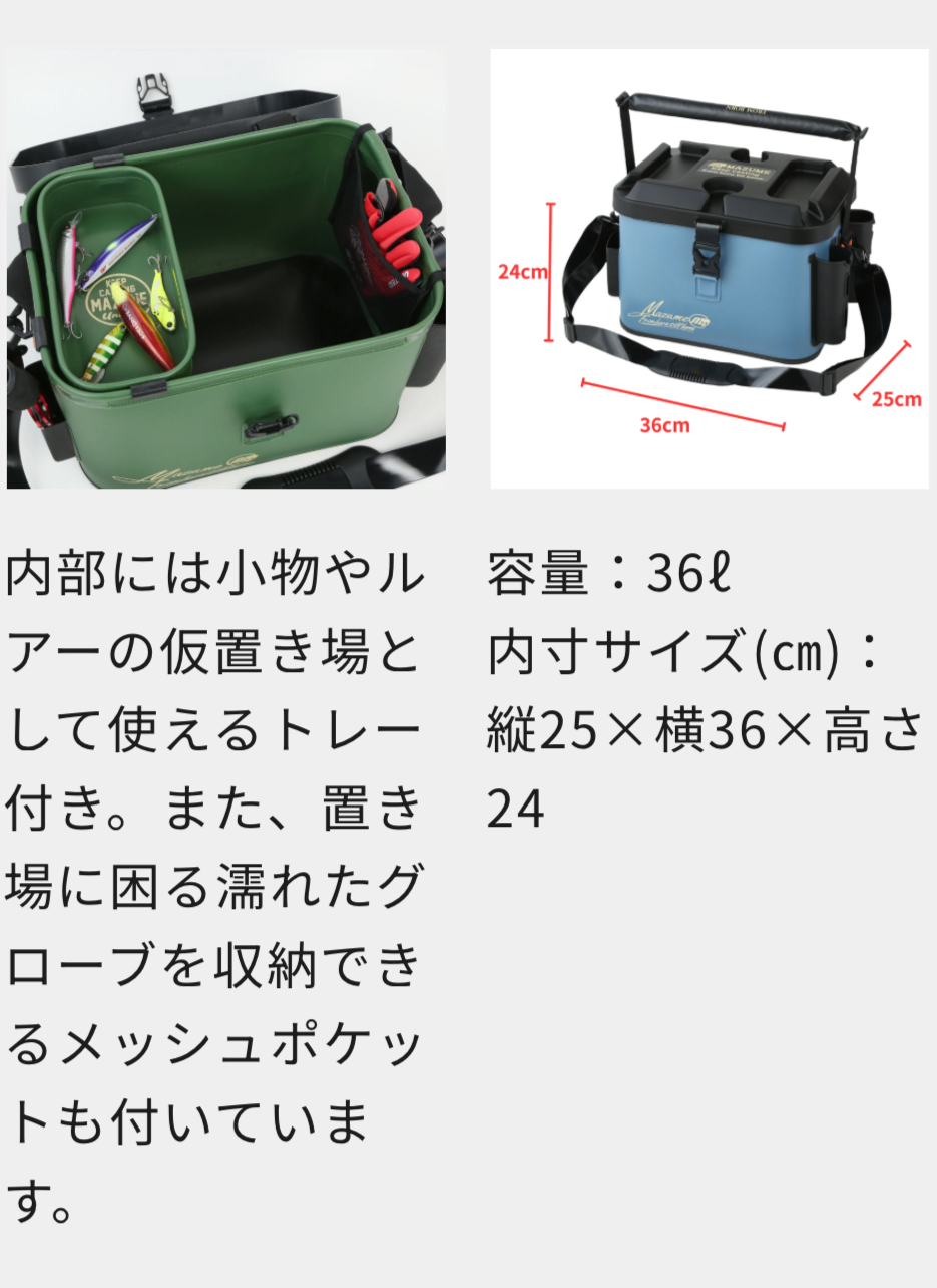 内部には小物やルアーの仮置き場として使える取り外し可能なトレーが付いています。