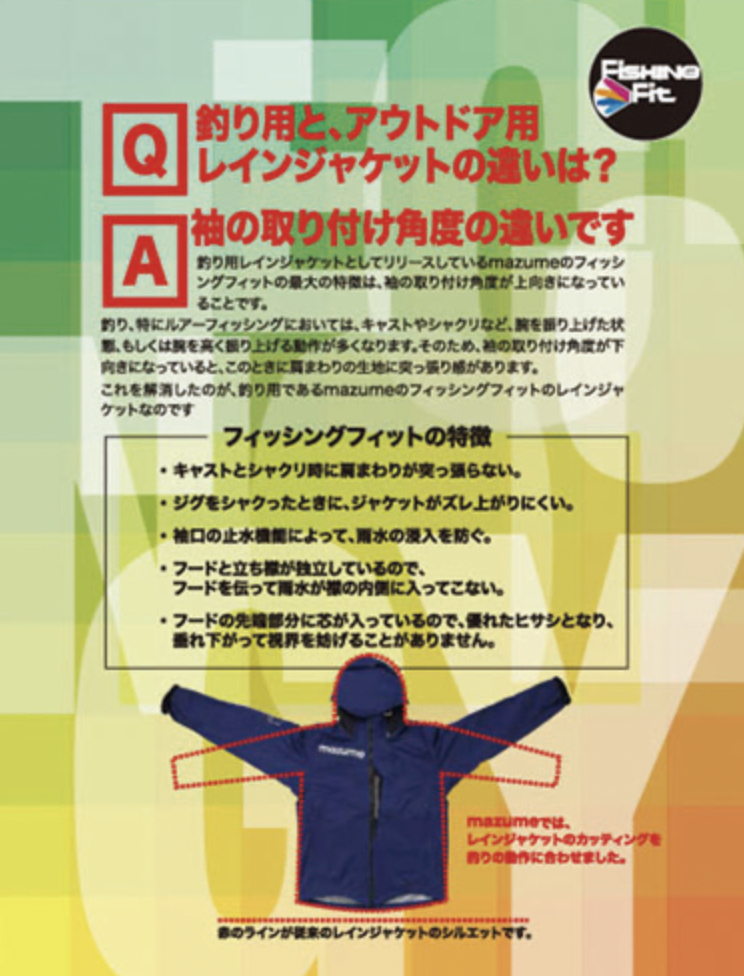 『Fishing Fit』+袖に立体裁断を施すことにより、キャストやシャクリの動作時にウエアが突っ張ることなく、且つスタイリッシュなシルエットを実現しました。前モデルよりジャケットのみ若干細身になり、よりスタイリッシュなシルエットになりました。