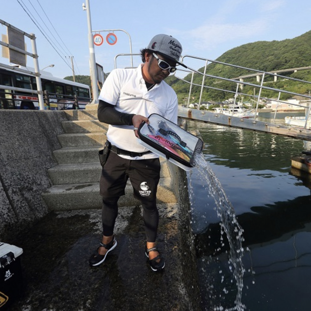 GTフィッシングに使う巨大なルアーを真水で洗い、ペヤング方式(インスタント焼きソバ)によって、フタを開けずにケース内に溜まった水を洗い流すことができます。