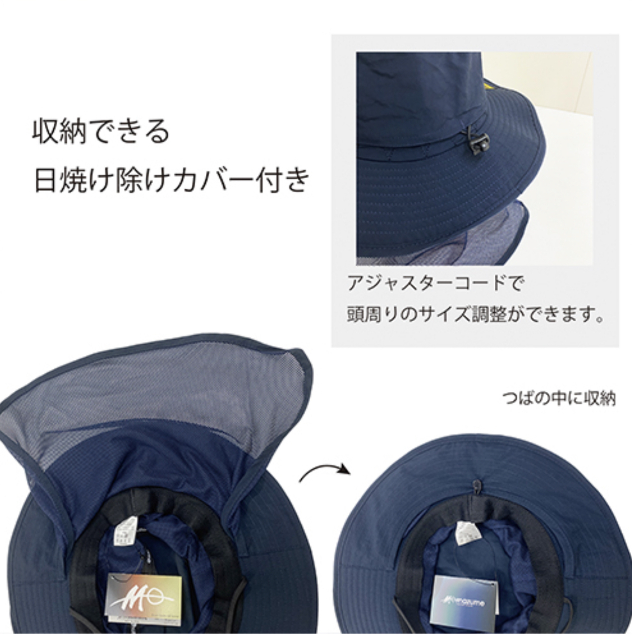 顔にかかる日差しを遮るブリムと、本体に収納されたメッシュのサンシェードフラップでうなじのヒリヒリと痛む日焼けを防ぎます。