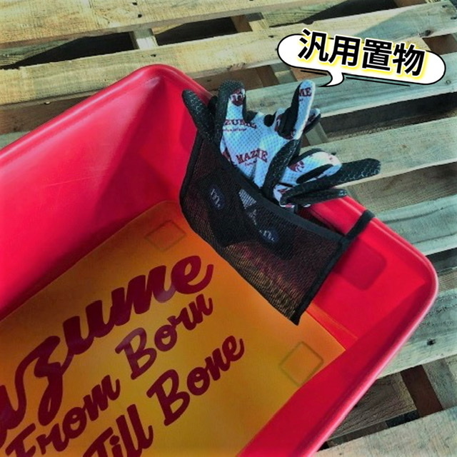 NEWモデルには新色のグリーンが加わりました。収納ポケットが付いているので、洗った物、まだ魚のニオイが付いたグローブ、ペンチやハサミなど、紛失しがちな小物を入れることができます。