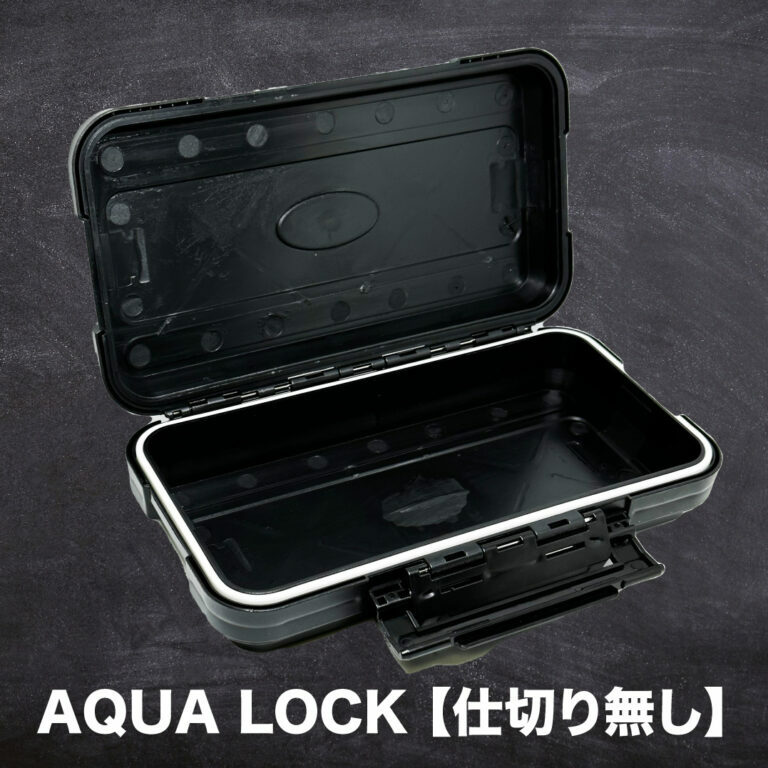 細分化された収納スペースで、サイズごとのアイテムもわかりやすく管理が可能。一眼で不足したアイテムを確認できる。防水パッキンを使用しておりロック状態での防水を実現。突然の雨や、波を被った場合でも中身をぬらさずごぞんが可能です。