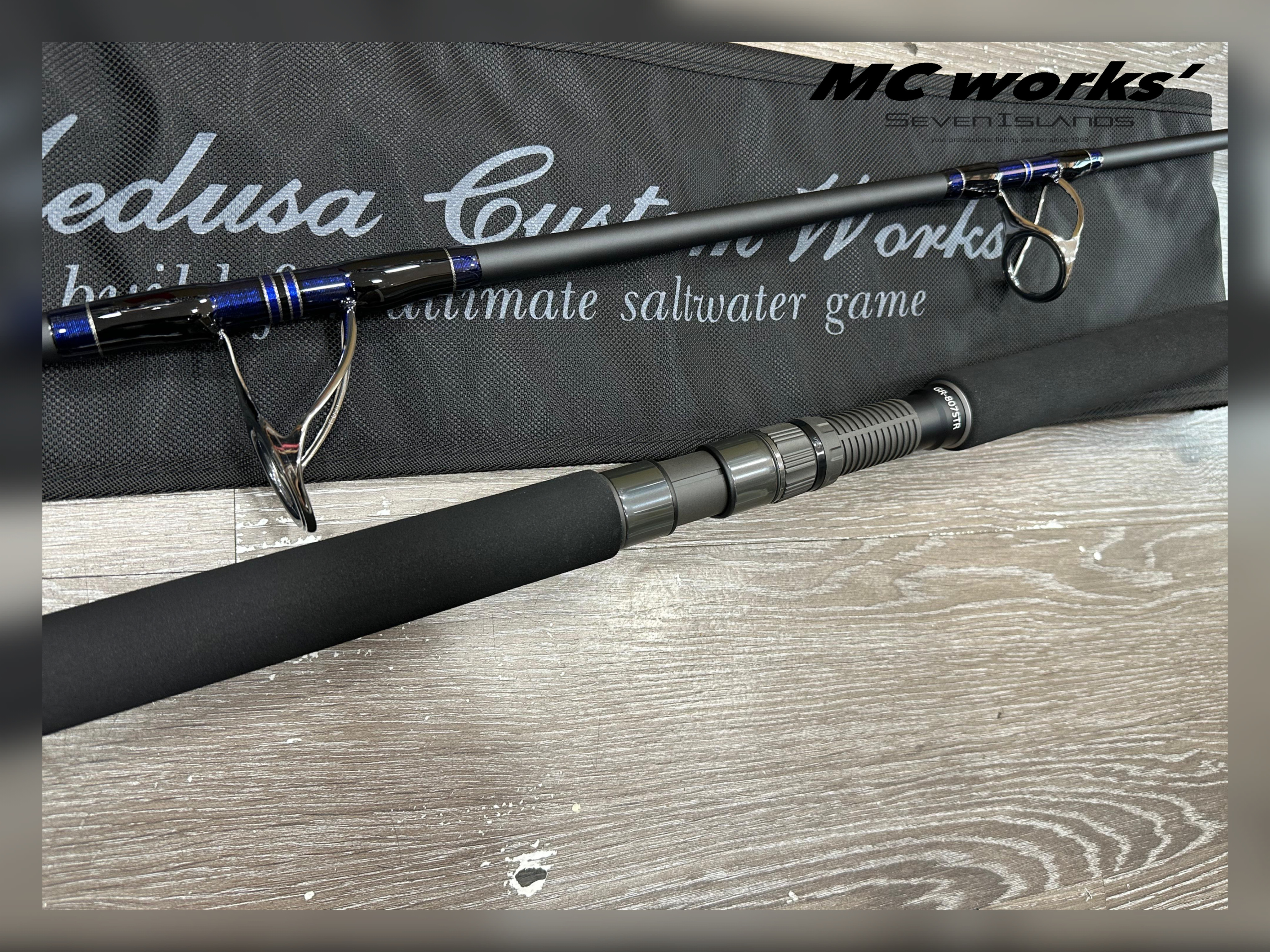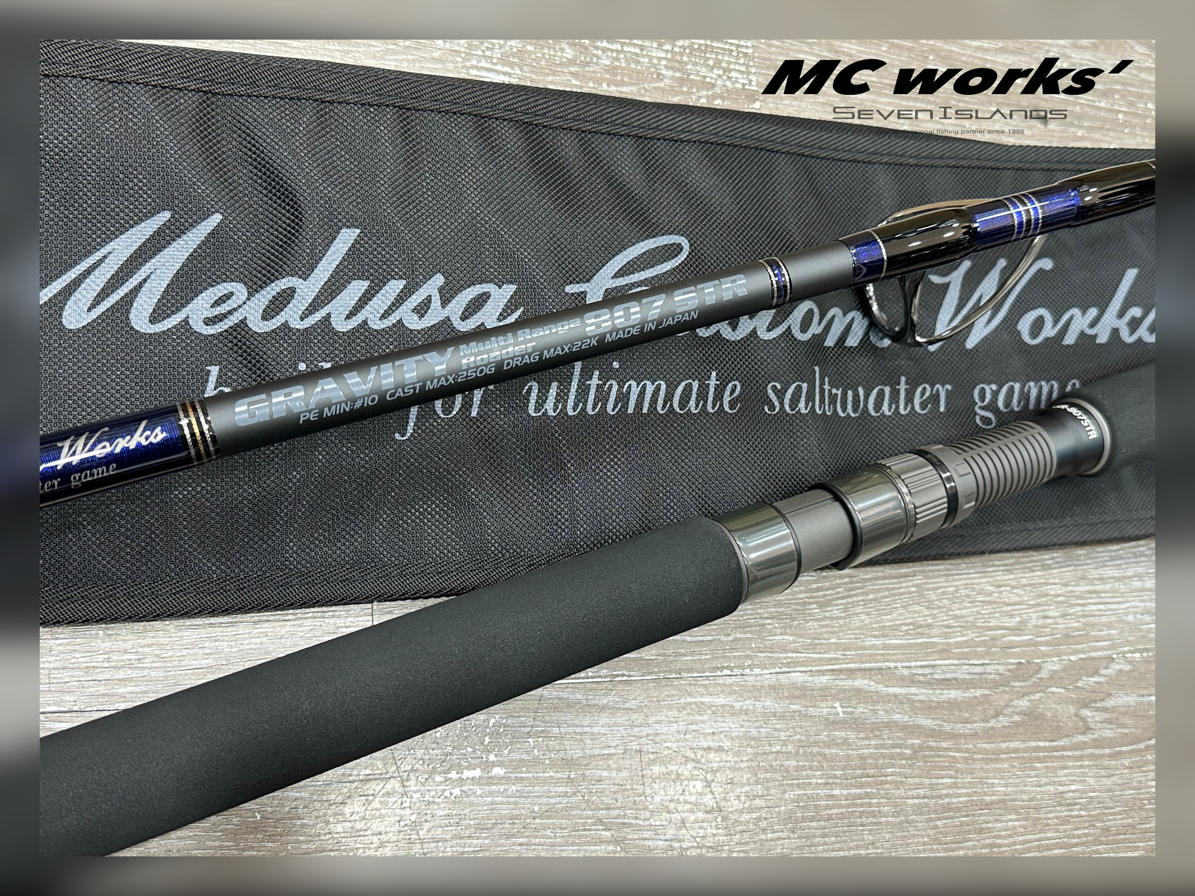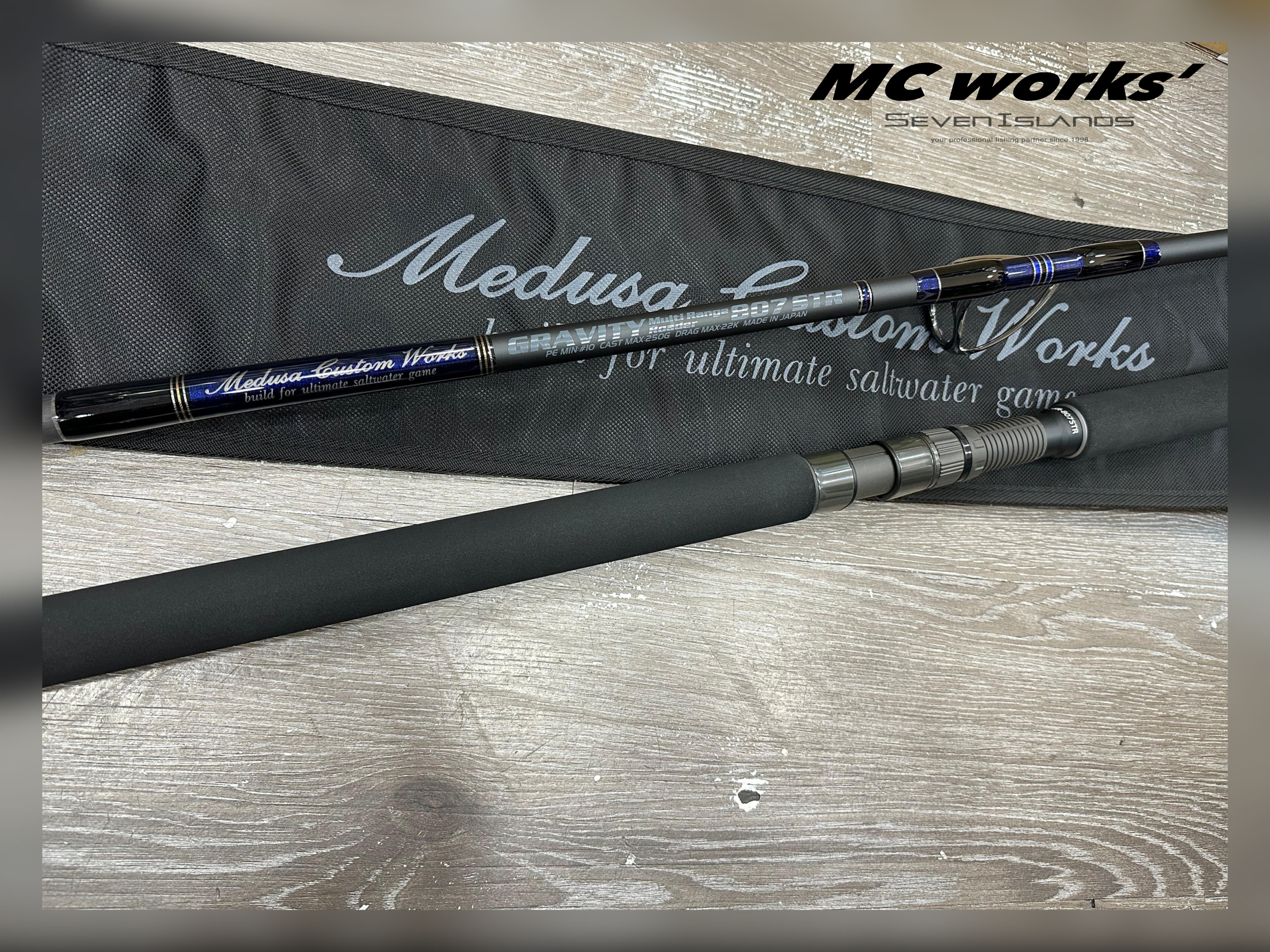 まるでZERO GRAVITY(無重力)空間で放出され、放物線を描かない物体のようにルアーに高エネルギーを与え飛翔させる。それは一種独特なフィーリングであり、従来既存のキャスティングロッドでは見られないもの。そのキャスタビリティを実現する為にガイドシステムも従来とは一線を画したT.RVSG40という高価なチタンバットガイドから始まるフルチタンガイドシステムを搭載。基本的なアクションはスローテーパーであり、ベンディングカーブも他のモデルよりもモデラートとなっており、より円弧の一部に近いベントカーブを描く。GRAVITYのアドバンテージはキャスタビリティだけではなく、ファイトにおいても秀逸。支点が近く、アングラーの手元で手繰り寄せる感覚に近いので、それが大型魚でも、アングラーに不安感をあまり感じさせないだけでなく無駄のないパワーデリバリーを可能にしています。スペックを見て頂ければわかるが、従来のパワークラスに対して、ワンクラス上のドラグ設定が可能となっていいる。ルアー操作においてもティップで小刻みなアクションをさせると言うよりはよりゆっくりと引きずるように、水をしっかりと噛んで押し出すイメージのアクションが出しやすい。これはルアーによっても異なるが、開発テストルアーである、ローカルスタンダード社のダイブベイトやパドルベイトの操作には非常に都合が良いものとなっている。