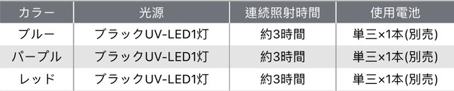 三代目と比べパワーのあるブラックUV-LEDチップを搭載。