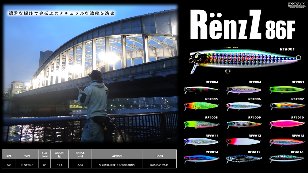 RAILGUN STUDIO RENZZ 86F FLOATING MINNOW LURE