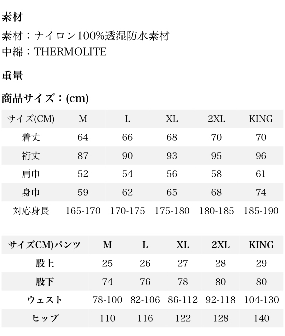 表生地は強度、耐久性に優れるナイロン素材、中綿は軽量かつ保温力を維持するTHERMOLITEを使用