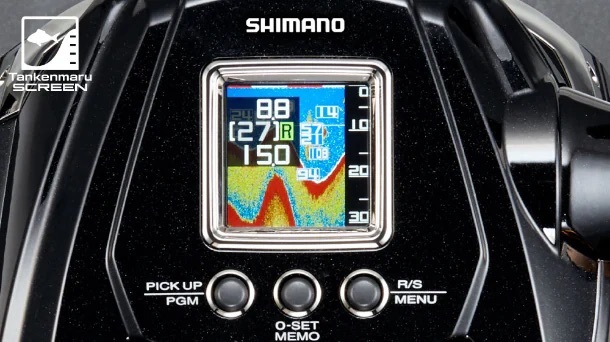 泳がせ釣りでは、水深はもちろん海底形状の変化やベイトの反応、コマセ釣りのキハダではビシダナとキハダ単体の動き、深場狙いでは海底の変化と反応(群れの大きさと泳層)と仕掛けの軌跡。これら海中の情報は、いずれも釣りを左右する重要なカギ。探見丸の情報をリールの液晶画面にカラー表示する探見丸スクリーンは、最小限の視線移動で最新の情報をリアルタイムで知ることができます。