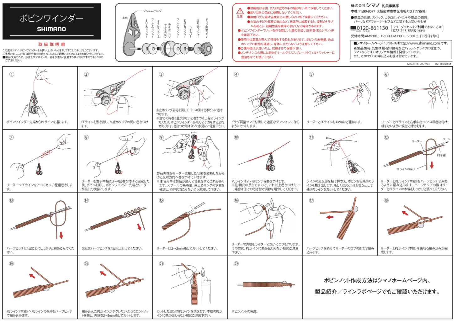 ロッドガイド等に使われるジルコニアリングを搭載し、極細PEにも対応。0.3号~3.0号のPEに対応しています。今まで出来なかったライトラインでの釣りを思う存分に楽しむことが可能です。ボディ形状は糸の絡みの少ない流線型のデザインを採用しています。こだわりパーツの採用により、滑らかにラインを送り出せる為、均一な高強力ボビンノットを実現しやすくなっています。社内実験においては、ボビンワインダーライトタイプを使用することで、使用しない場合より25%、結束強度がアップするという実証データも得られました。