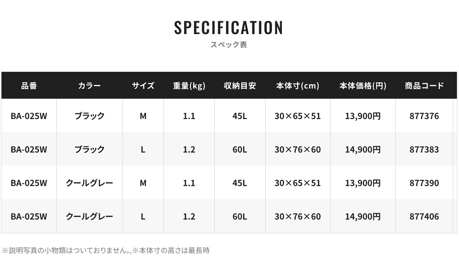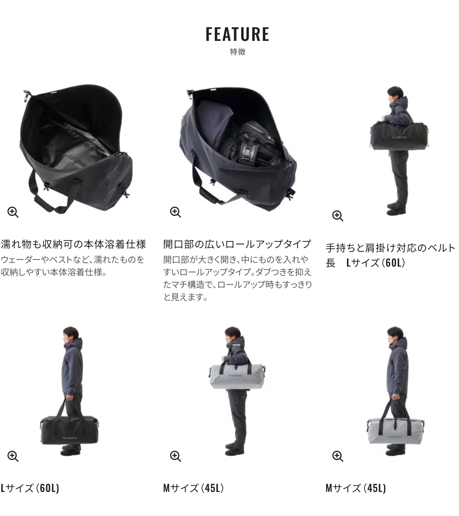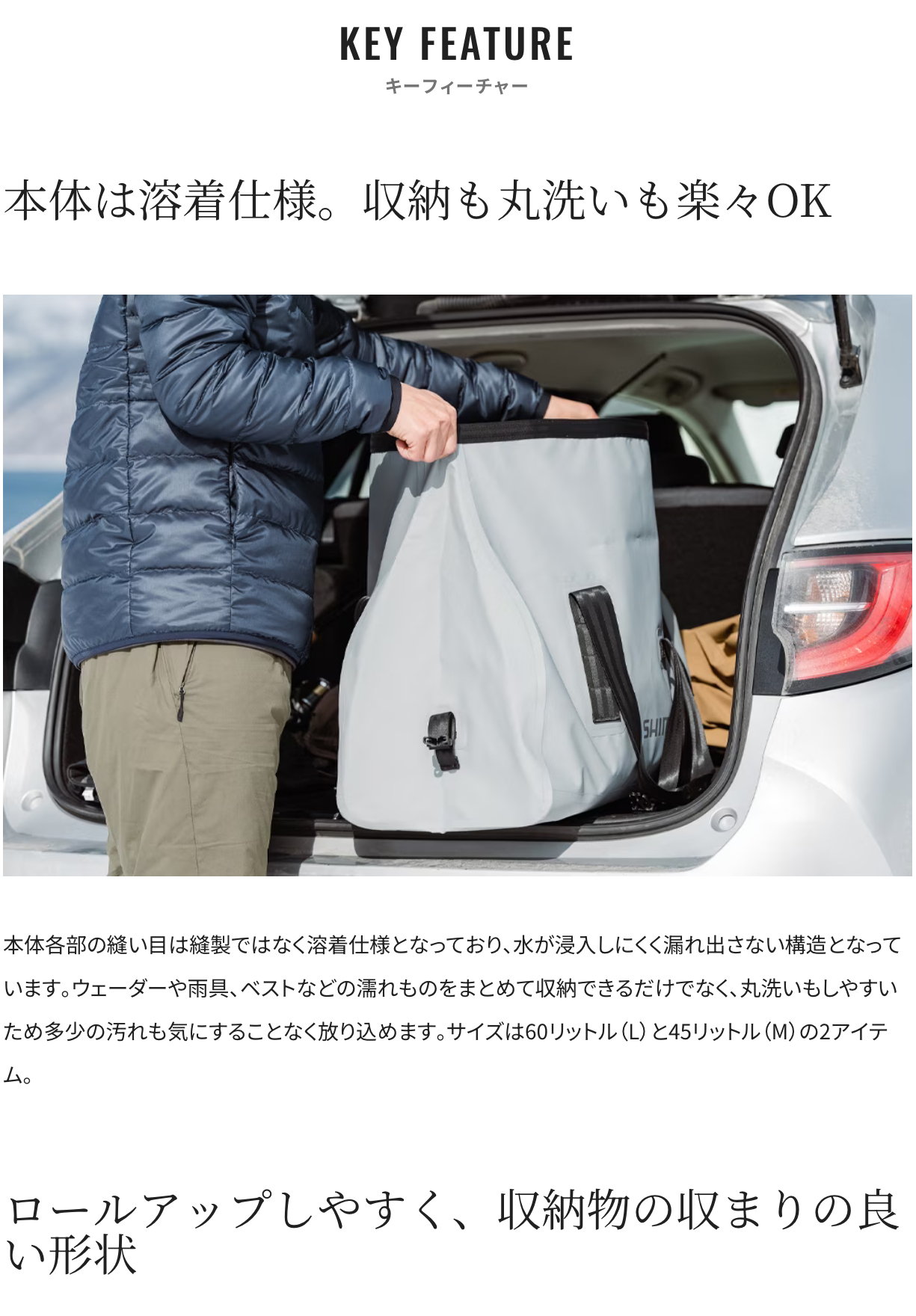 ・ウェーダーやベストなど濡れたものを収納しやすい、本体部は溶着仕様