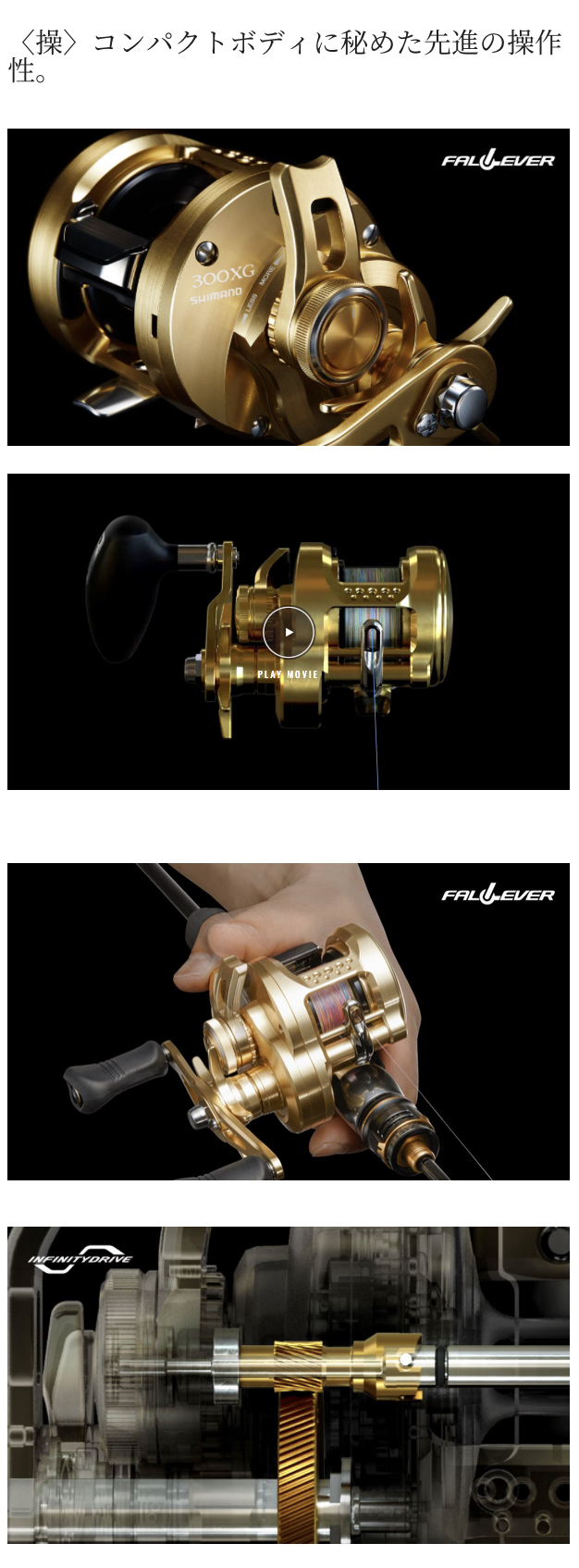 精密なマイクロモジュールギアと堅牢なHAGANEボディ、高耐久の内部パーツが一体となって生み出される滑らかで力強い巻き上げ。その性能をさらなる高みへと引き上げるべく、インフィニティドライブを搭載して巻きの軽さ、力強さとともに感度も向上。Xプロテクトを搭載することで防水性能・耐久性も高めました。新形状NEWフォールレバーは仕掛けの沈下速度を素早く正確に制御。ワンウェイローラーベアリングの搭載で巻き取り方向では回転が重くならない画期的なオリジナル機構を搭載。200サイズはボディを前作よりコンパクト化し、レベルワインド連動モデルとしては初となるフリップオープン搭載でスプールへより簡単にアクセスすることが可能になりました。