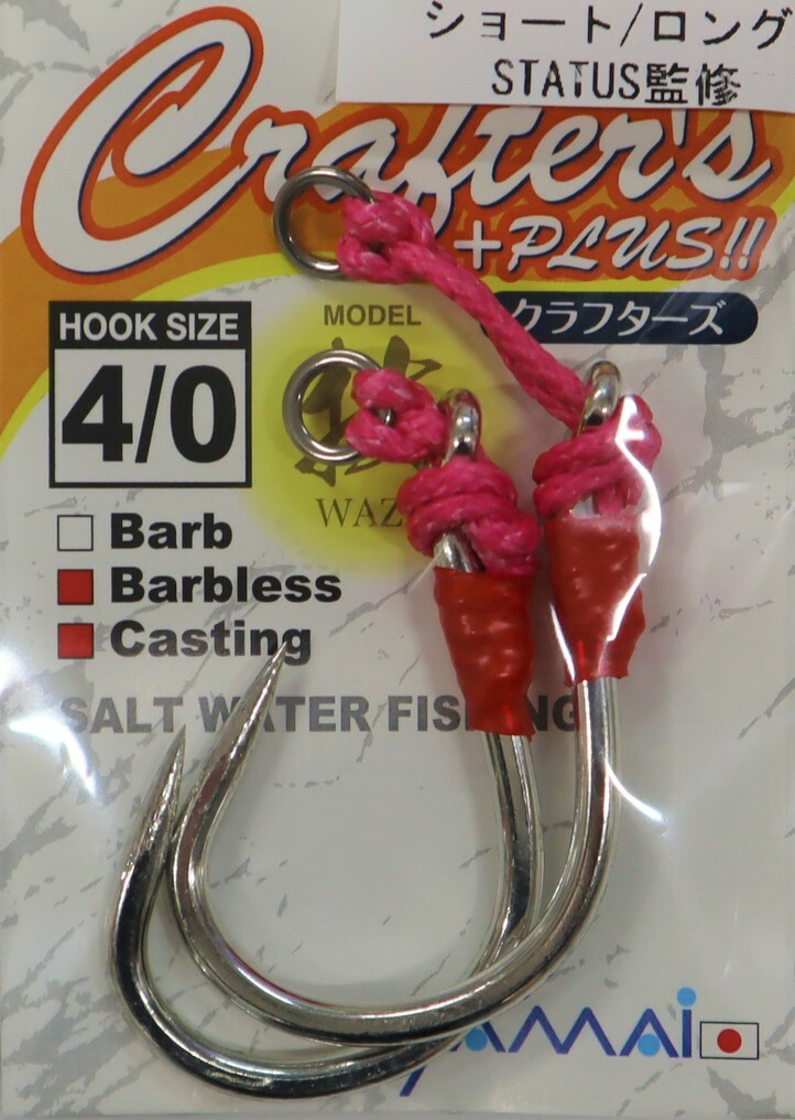 X STATUS 朝長船長This is short assist and long assist type in a pack. We recommend the short for front hook and the long for rear hook on the plug. The hook has much power and tough wire choosed. All items are tested in many years in the many place by our field stuff and distributers in the world. They made the best goods with suitable material. We can recommend with this confidence.