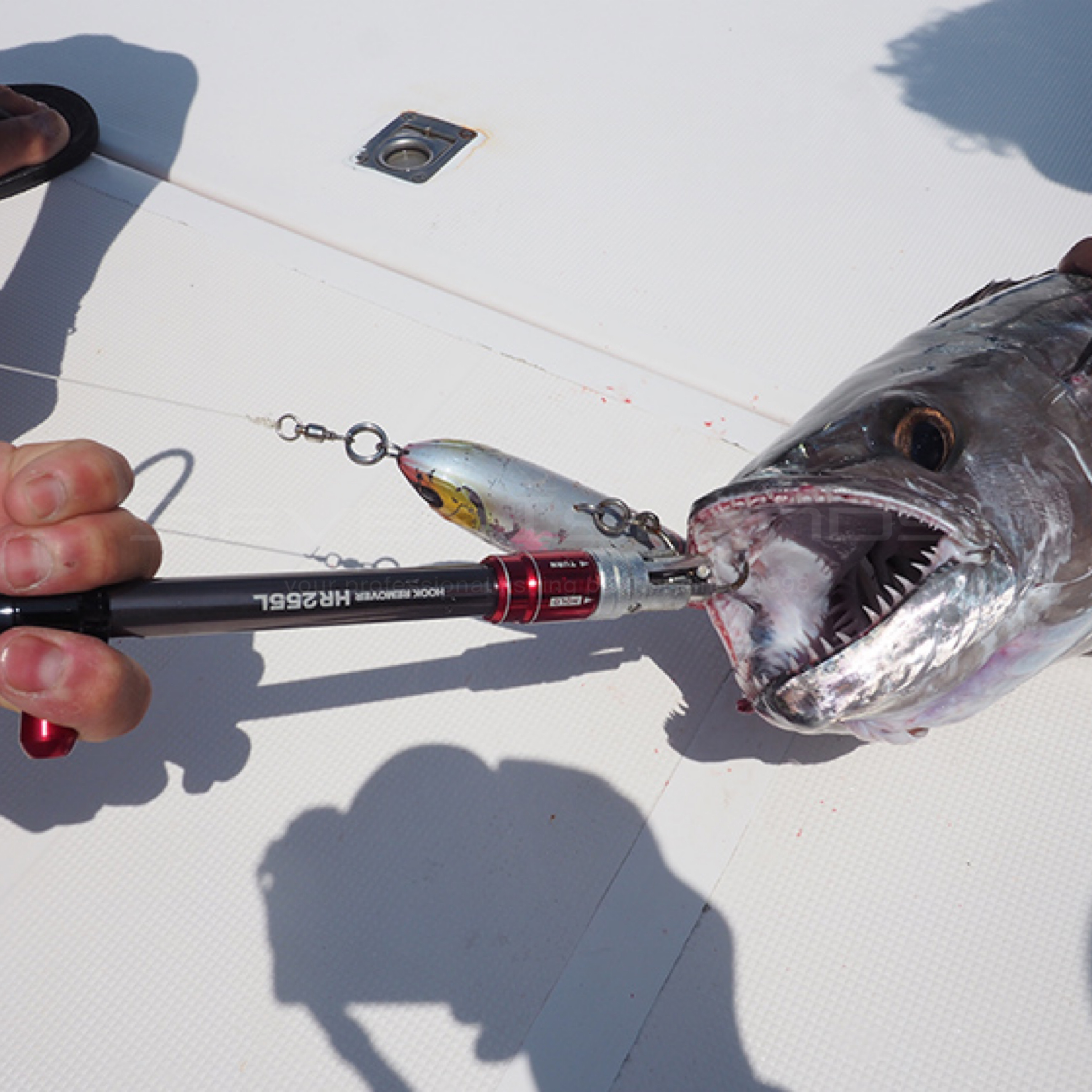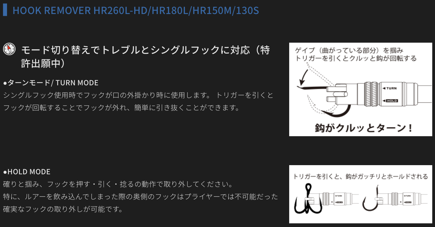 危険なフックを暴れる魚から何よりも早く確実に外す!