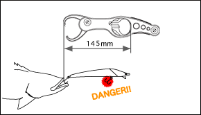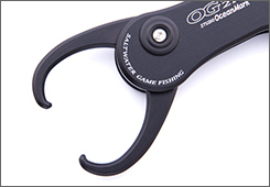 また、グリップ先端は魚の脱落防止を考慮し内側に曲げてあります。 また、前方にせり出しながら開く動きにより可動側グリップからも狙いが付けやすくなり、閉まるときは魚のアゴを引き寄せる動きなのでがっちりとホールドします。