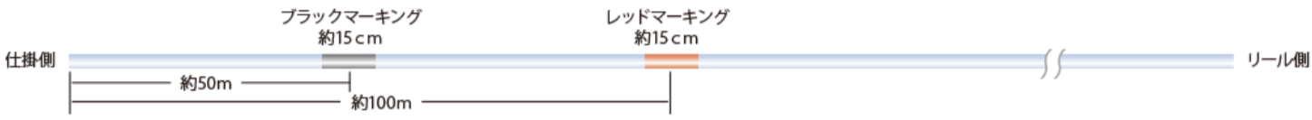●カウンター付リールへの糸巻量の設定時に便利な、残り100m(レッド)・50m(ブラック)ポイントにマーキング付き。
