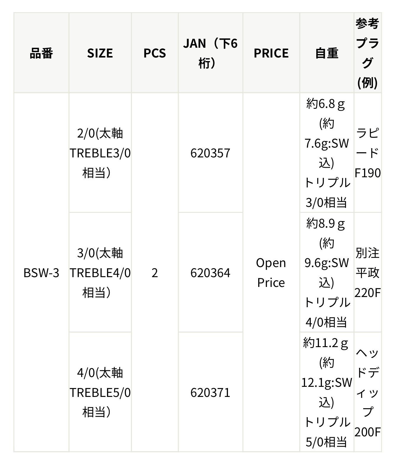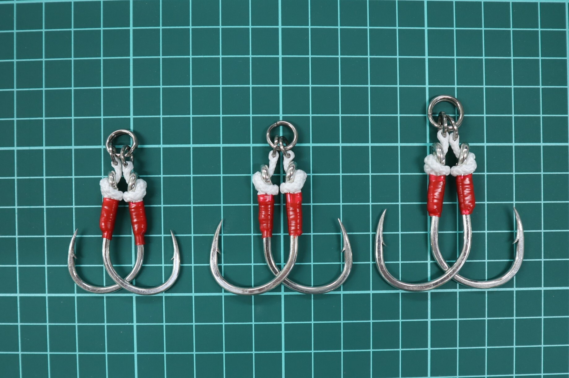 SPT503カン付バーブ付フックを使用した、プラグ用ツインフックになります。 フックの強度は、もちろんながら、ショートシャンク&ワイドゲイブフックですので、いろんなジャンルのプラグにセッティング可能となりました。