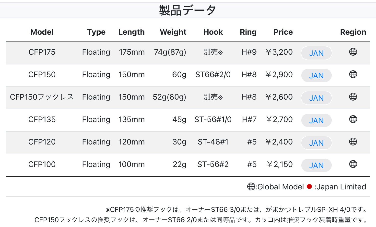 ボリューミーなボディと絶妙なウェイトが魅力。オフショアはもちろん、ショアからの大型青物狙いにも対応します。ステイ時においても波と同調しない自然な揺らぎをもたらすR-Unit を搭載し誘いのパターンが広がります。フック付きモデルと、お好みのフックをつけられるフックレスモデルのラインアップです。